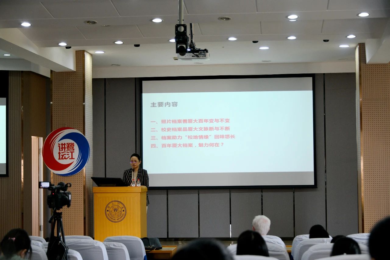 石慧霞馆长通过一组组照片带领大家回看厦大百年变化与发展脉络,并结合百年校庆之际,档案馆助力“校地情缘”活动,从校史视角进行校地关系研究的工作实际,解读档案的魅力,诠释厦门大学的文化底蕴与精髓,帮助大家更深入的理解厦门大学的文化传承和历史流转,引发对厦门大学文化的整体性、深入性和长远性的思考,从而建立起高度的爱校护校荣校自觉性。