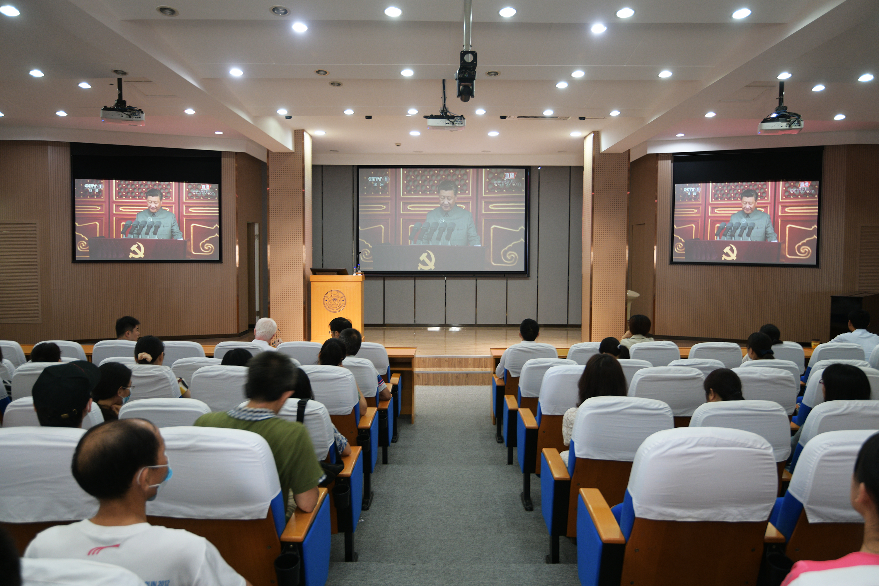 7月1日上午,在中国共产党成立100周年的历史性时刻,图书馆组织全馆员工在五楼报告厅,集中收听收看了庆祝中国共产党成立100周年大会直播实况。