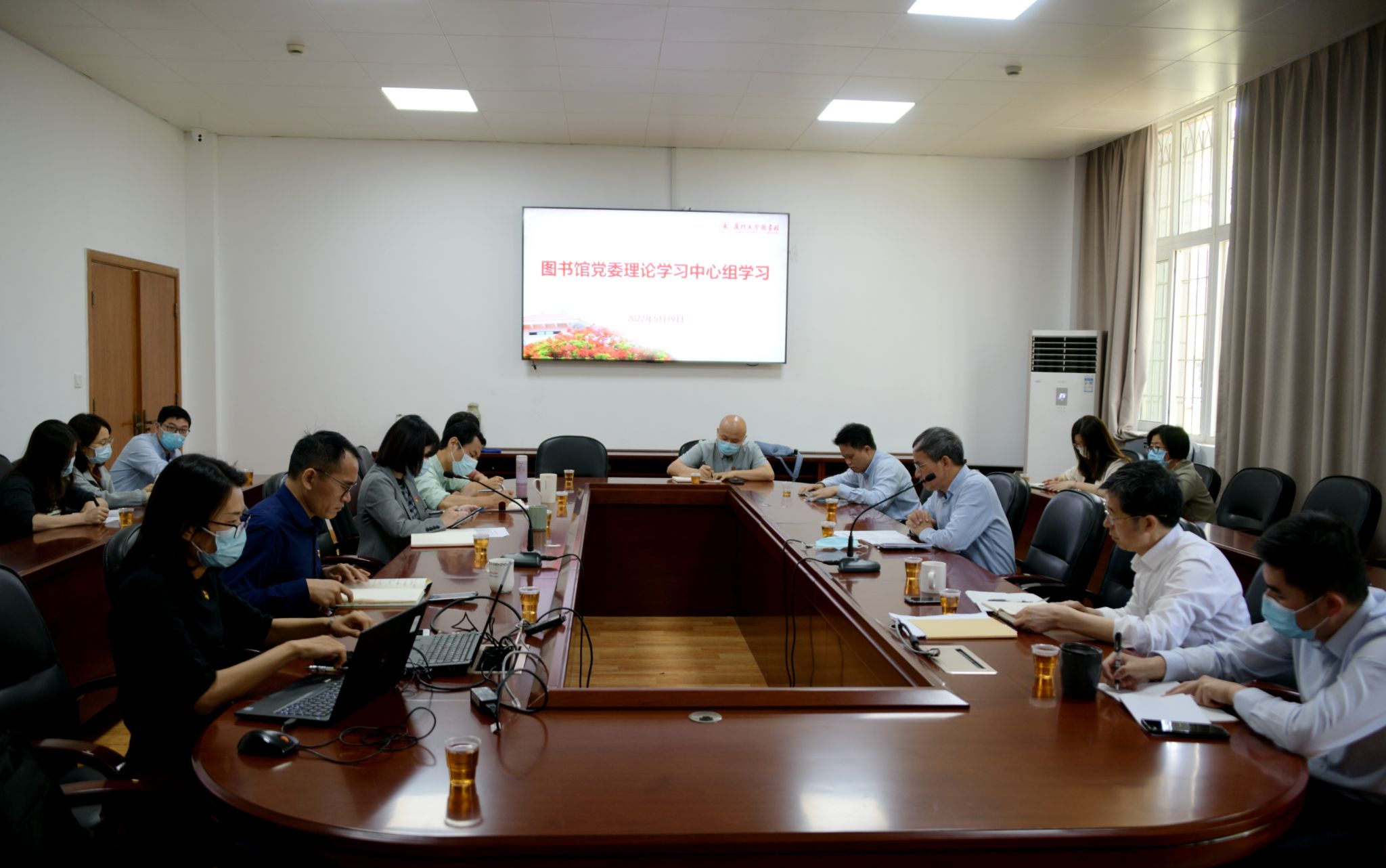 5月19日上午,图书馆党委在总馆一楼会议室召开理论学习中心组学习(扩大)会,集中学习研讨《习近平书信选集》第一卷,深入学习领会习近平总书记给国家图书馆老专家的回信精神。馆党委书记侯利标主持会议,理论学习中心组成员、各党支部书记参加本次学习会。校党委第三巡视组成员洪少丹、方伊臻列席会议。