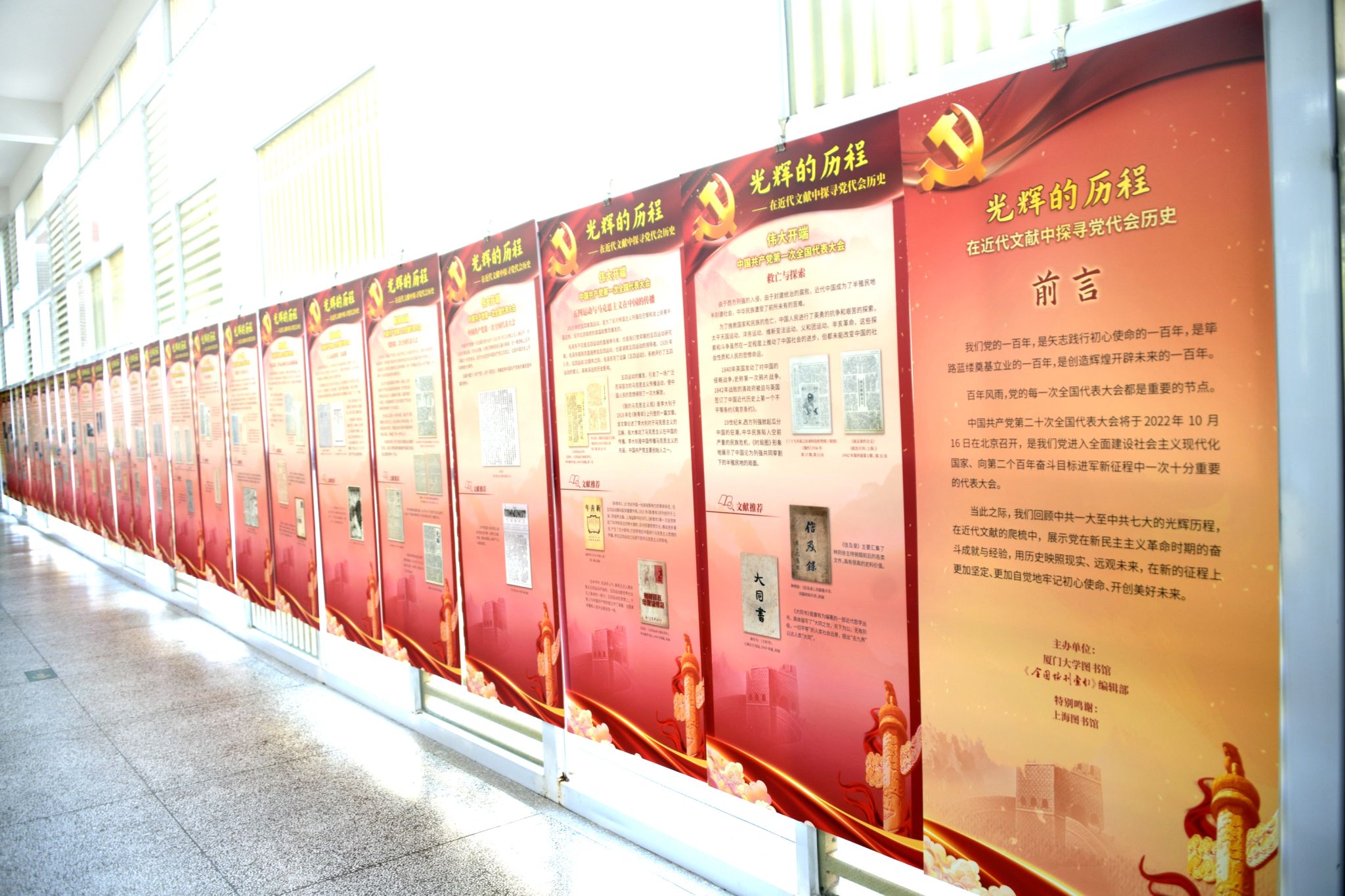 10月5日,《光辉的历程——在近代文献中探寻党代会历史》主题展览在思明校区总馆二楼长廊展出。该展览充分挖掘馆藏近代特色文献资源,重点回顾中共一大至中共七大的光辉历程,展示党在新民主主义革命时期的奋斗成就与经验,用历史映照现实、远观未来。