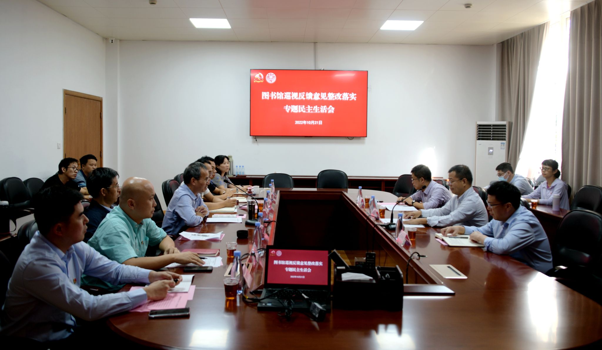 10月21日下午,图书馆党委在总馆一楼会议室召开校内专项巡视反馈意见整改落实专题民主生活会。会议由图书馆党委书记侯利标主持,馆党政领导班子成员、党委委员参加会议,工会副主席、办公室主任、党务秘书列席会议。学校纪检监察机构第一纪检监察室主任房太伟、校党委组织员兼党建办副主任葛郝锐、巡视办副主任洪真裁到会指导。