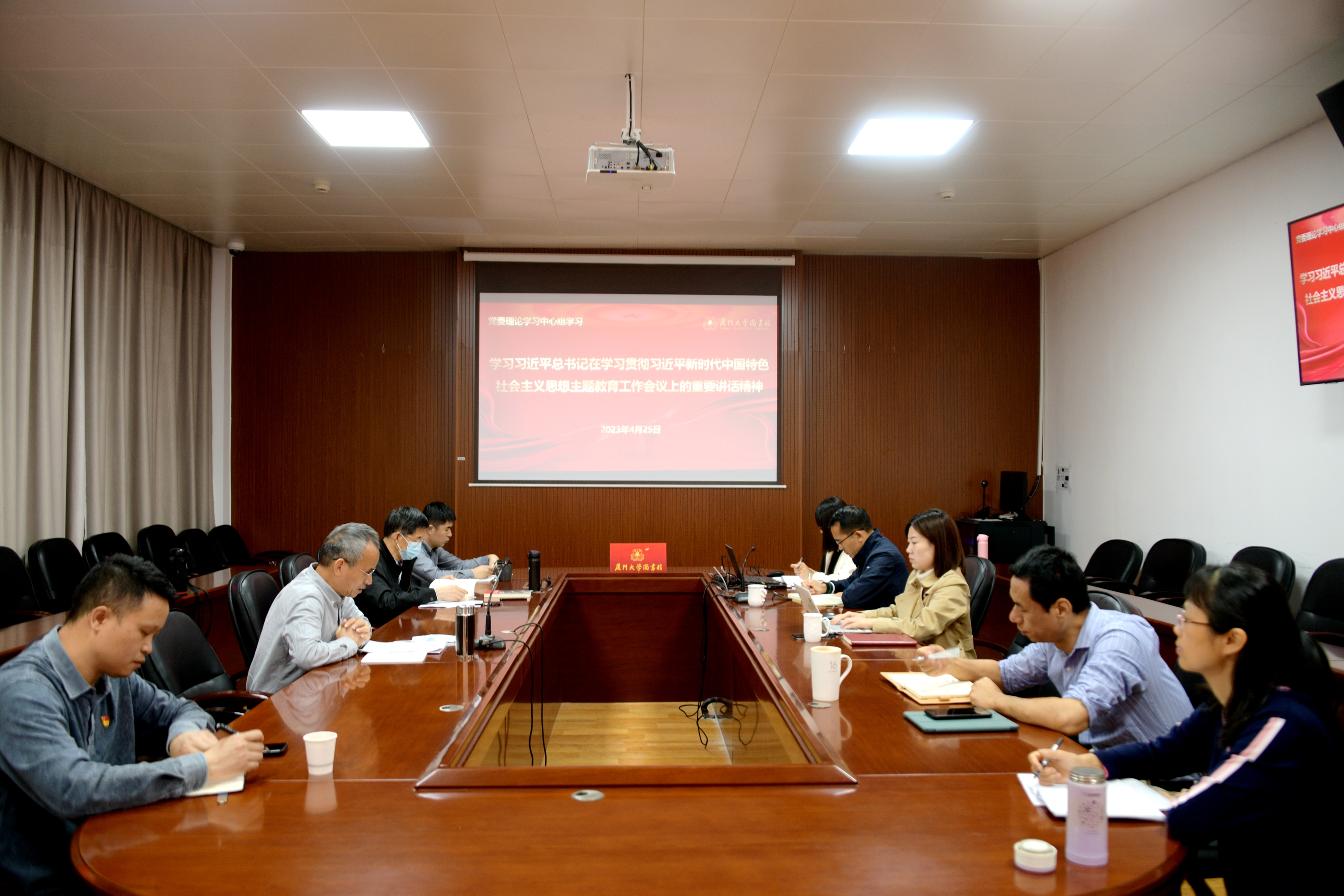 为深入开展学习贯彻习近平新时代中国特色社会主义思想主题教育,4月25日上午,图书馆党委理论学习中心组举行专题学习会,认真学习领会习近平总书记在学习贯彻习近平新时代中国特色社会主义思想主题教育工作会议上的重要讲话精神。馆党委书记侯利标同志主持集体学习。