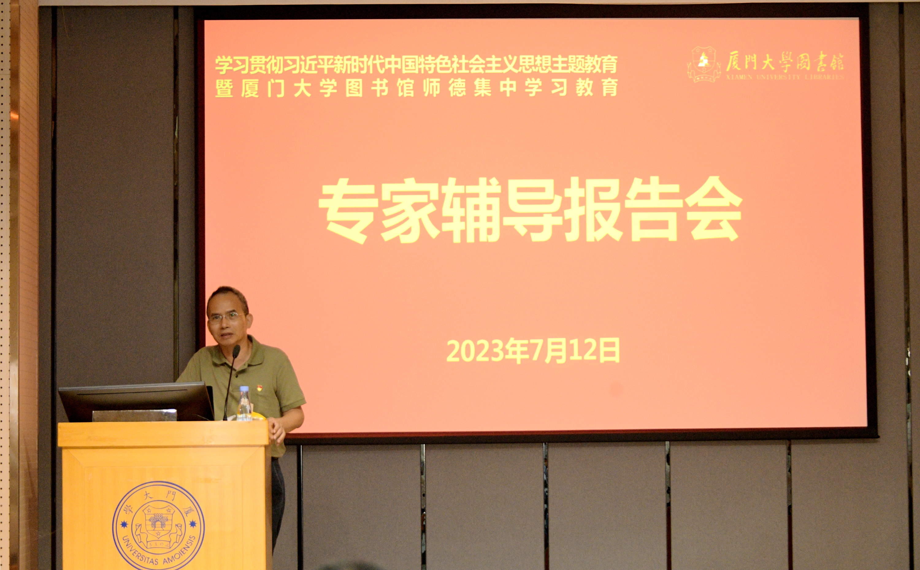 7月12日下午,图书馆举办学习贯彻习近平新时代中国特色社会主义思想主题教育暨厦门大学图书馆师德集中学习教育专家辅导报告会,复旦大学特聘教授、复旦大学社会科学高等研究院专职研究员、复旦大学国际关系与公共事务学院博士生导师贺东航应邀为全馆员工作专题辅导。报告会由馆党委书记侯利标主持。
