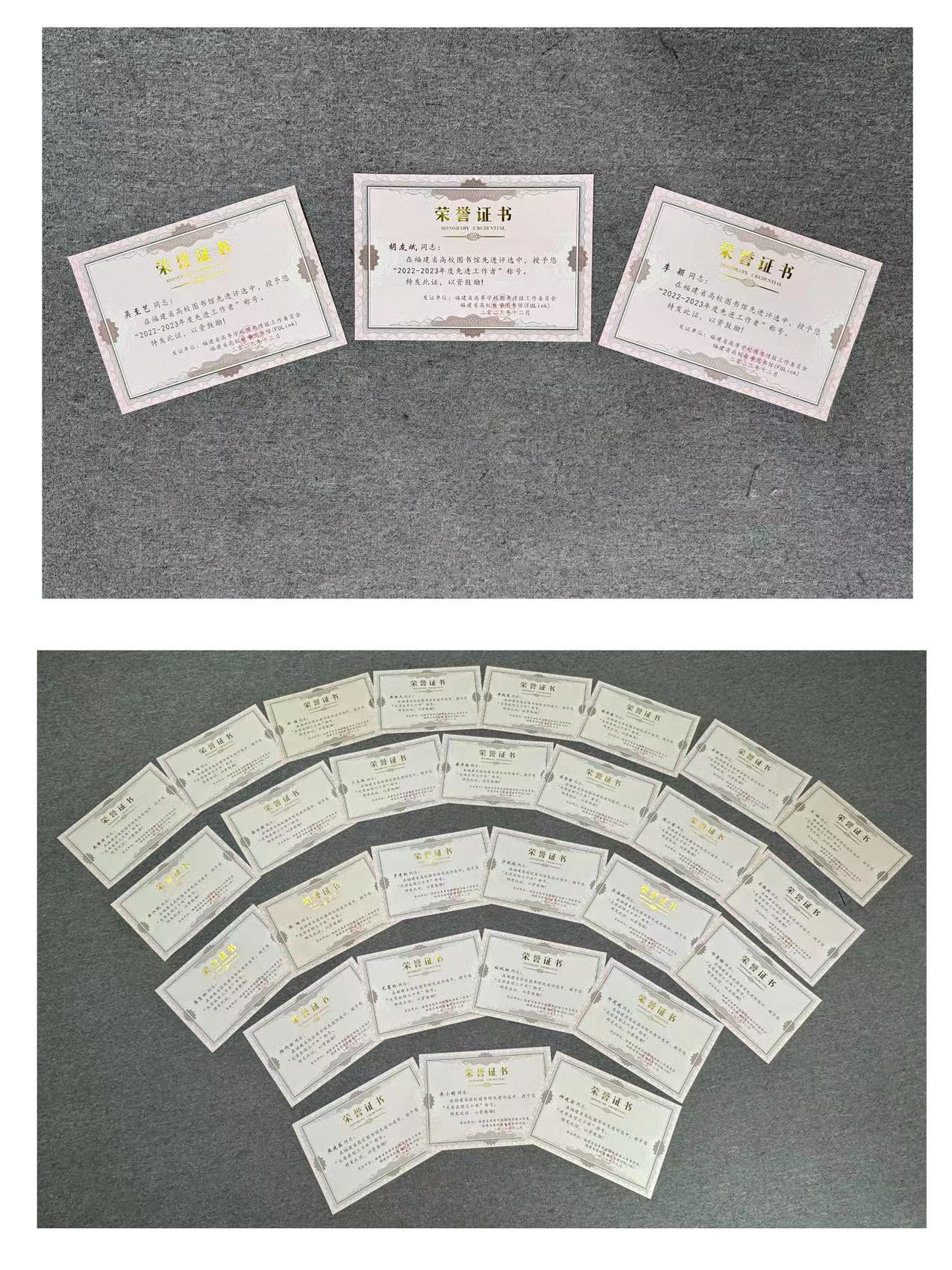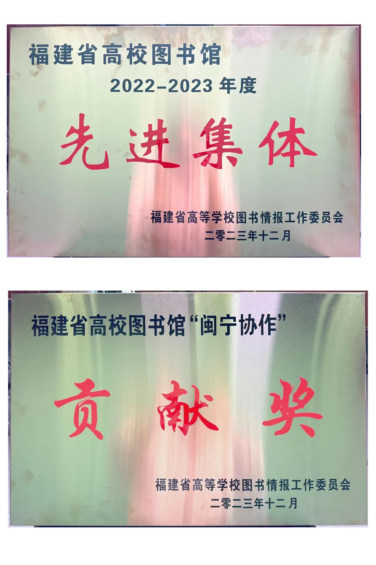 在全省高校范围内开展的2023年度先进集体和先进工作者评选活动中,我馆被授予“福建省高校图书馆2022-2023年度先进集体”和福建省高校图书馆“闽宁协作贡献奖”荣誉称号。吴至艺、李颖、胡友斌三位馆员荣获“2022-2023年度先进工作者”称号。卜卫兵、蔡秀英等28位同志获颁“光荣在馆三十年”荣誉奖章。