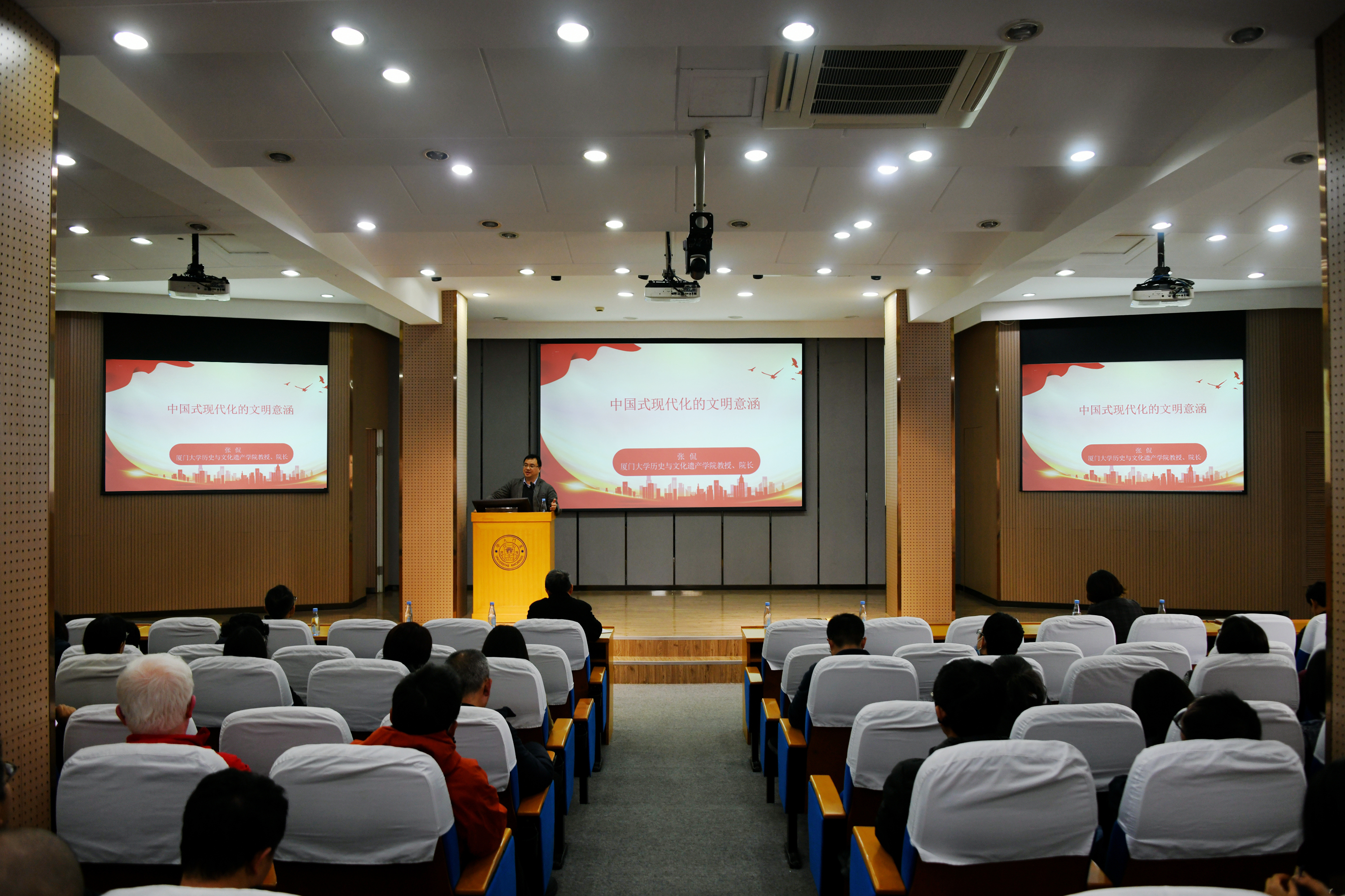 张侃教授以厚实的学术功底从文明进程与“西式现代化“的盛衰、文明接触与近代中国的“现代化“认知、文明意涵与“中国式现代化”的表与里三个方面深入浅出地阐释了中国式现代化的文明意涵,指出中国式现代化是马克思主义文明观的继承与发展,是马克思主义基本原理与中国具体实际相结合的理论彰显,更是赓续历史文脉、谱写中华民族现代文明华章的实践确证。整场报告会内容丰富、资料详实、史论结合、逻辑清晰,对于深刻理解中国式现代化的中国特色、本质要求和重大原则具有很强的指导意义。