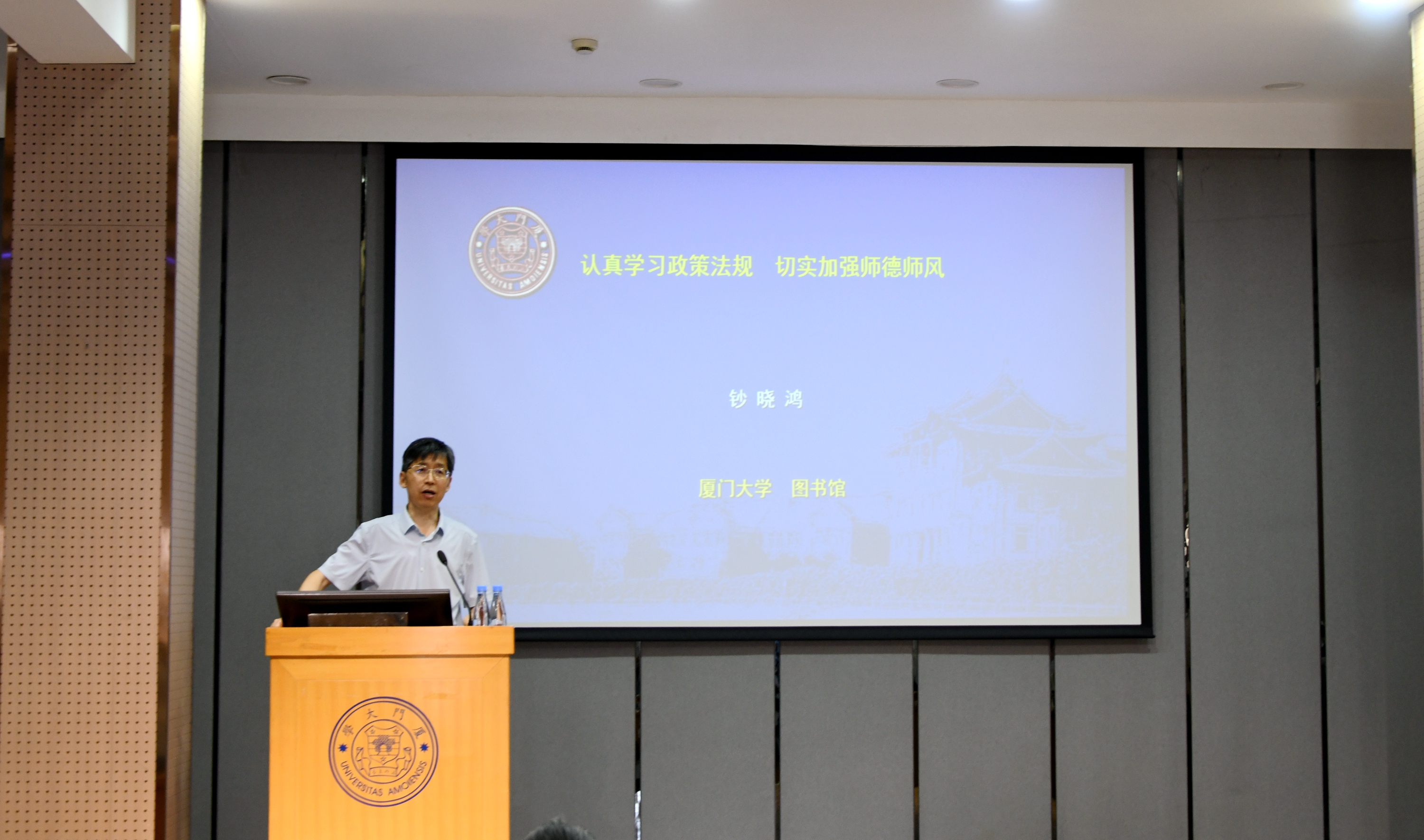 首先,馆党委副书记、馆长钞晓鸿以《认真学习政策法规,切实加强师德师风》为题作专题报告。他通过系统梳理师德师风的相关政策法规规定,深入阐述了师德师风建设在图书馆工作中的重要性。他指出,深化师德师风建设是造就高素质馆员队伍的关键之举,要不断健全相关工作机制,确保主体责任层层压实。全体馆员要认真学习政策法规,提高对师德师风建设的全面认识;要善于因势利导,以春风化雨的方式教育引导广大读者。