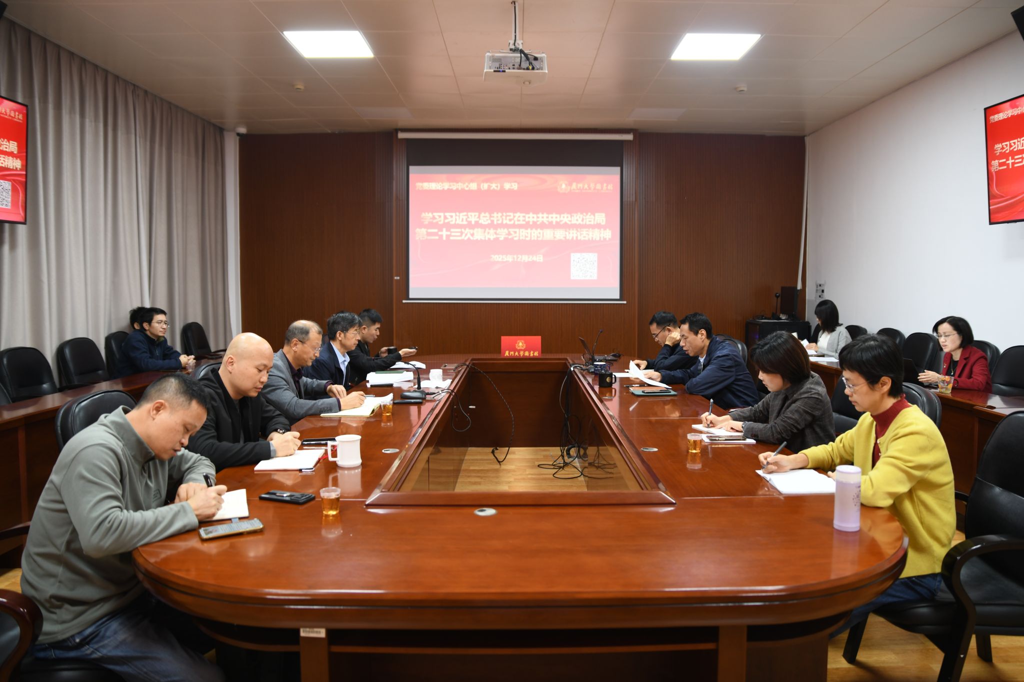 12月24日上午,图书馆党委召开理论学习中心组(扩大)学习会,深入学习习近平总书记在中共中央政治局第二十三次集体学习时的重要讲话精神。馆党委书记杜海林同志主持会议,理论学习中心组全体成员、党支部书记参加学习。