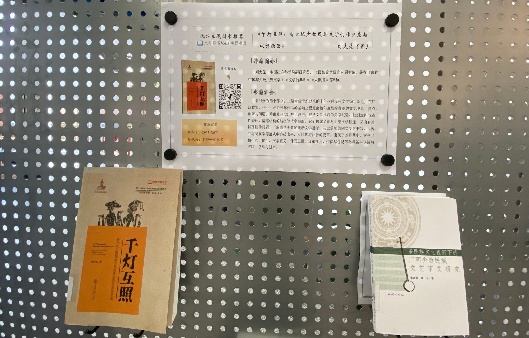 书展分为线上线下两部分。线上依托“厦大图书馆”微信公众号,重点推荐精选的民族文化主题图书,带领师生共同感受各民族的美好与活力。线下在思明校区总馆二楼布置实体书展,充分利用展板、电子屏、纸质海报等宣传形式,展出包括民族文学、民族音乐、民族美术、民族舞蹈、民族建筑等主题图书百余册,多角度全方位呈现多姿多彩的中华民族优秀传统文化。