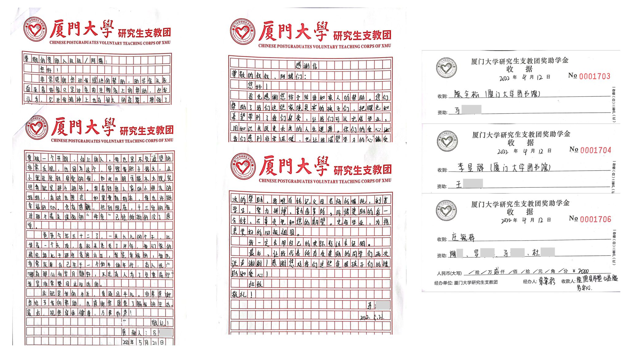 2020年10月,图书馆党委为响应厦门大学研究生支教团的倡议,号召全体馆员向支教团捐款捐物。在那次活动中,全体馆员除了捐助学习生活用品之外,更有部分馆员选择了捐资助学的方式,并坚持至今。馆员庄锐锌看到首期资助的4名孩子学业进步,倍感欣慰,今年特意将资助名额增加至5名。
