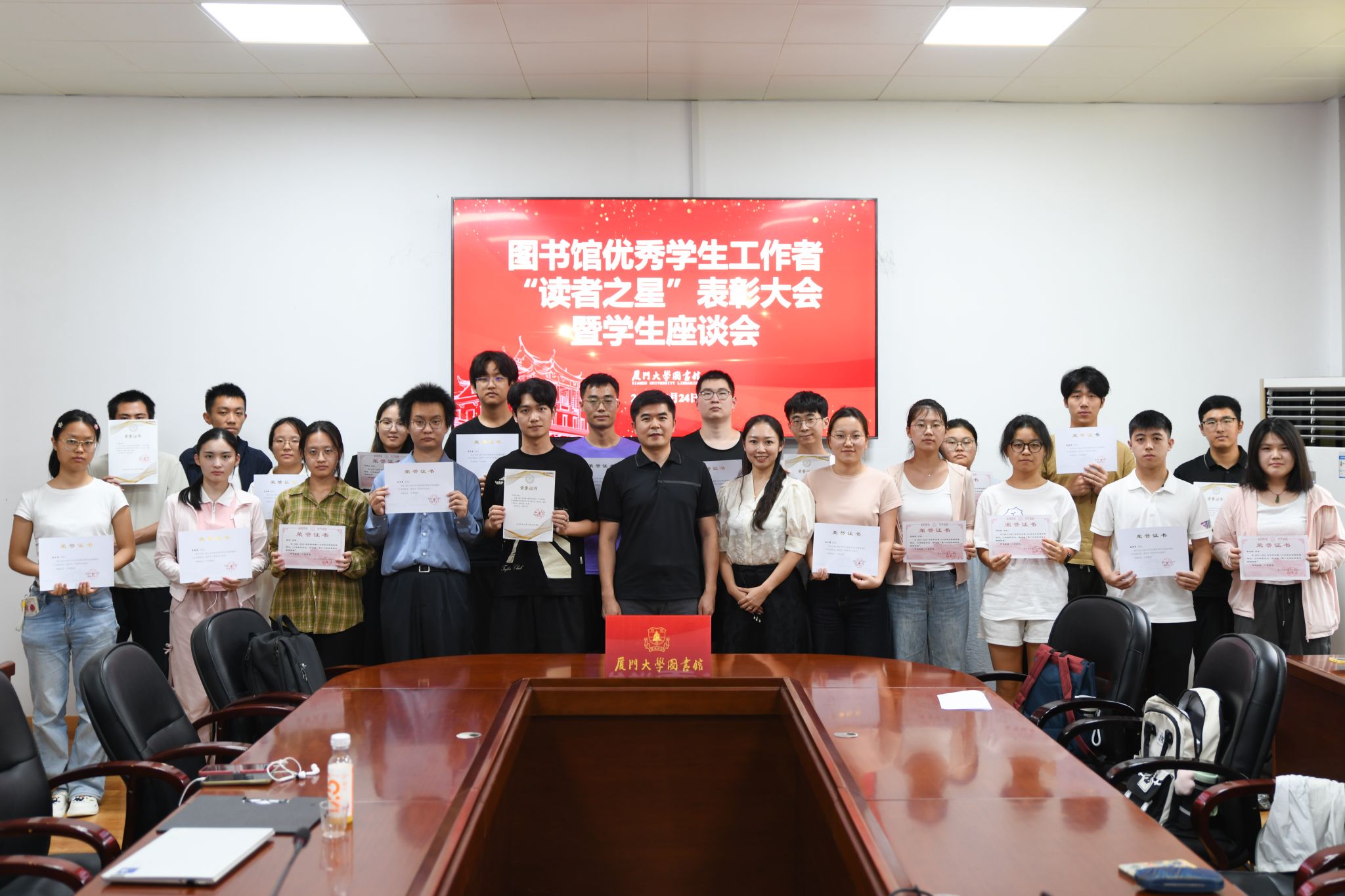 在证书颁发环节,16位同学凭借对图书馆的热爱、积极参与各项业务及活动所获得的图书馆积分,在2025届毕业生中位列排名前1‰,被授予“厦门大学图书馆读者之星”称号。同时,会议还颁发了优秀学生工作者荣誉奖项,30位同学获评“图书馆优秀学生助理”(其中14名推荐为“厦门大学优秀学生管理助理”),30位同学被授予“图书馆优秀学生志愿者”。