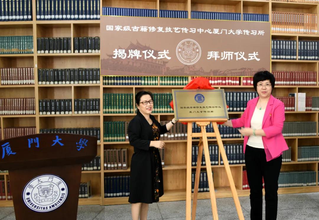 10月13日上午,国家级古籍修复技艺传习中心厦门大学传习所揭牌暨拜师仪式在图书馆隆重举行。