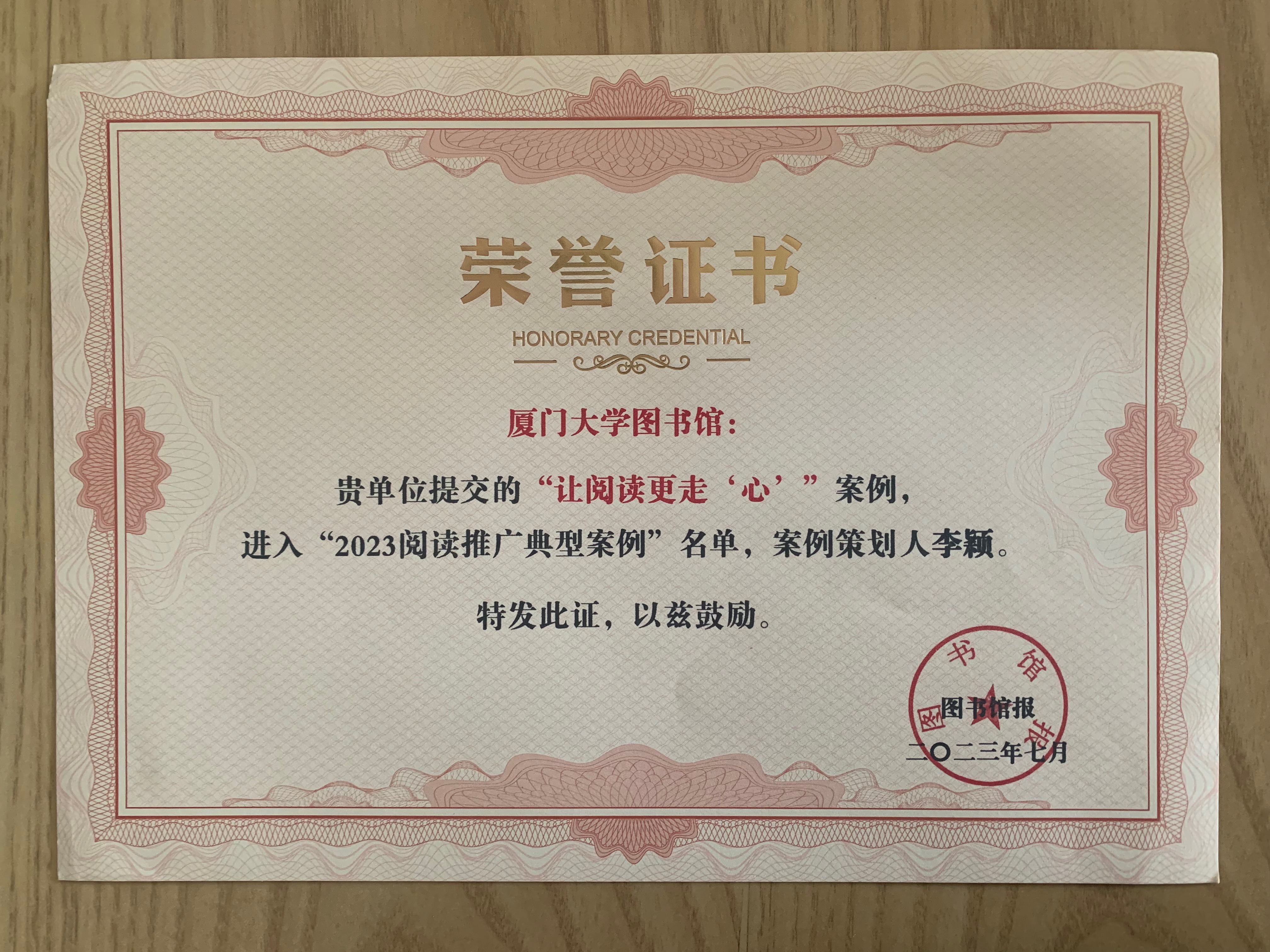 论坛于今年3月份启动了“2023阅读推广典型案例”征集活动,我馆馆员李颖策划的案例“让阅读更走心”从全国各单位提交的300多个案例中脱颖而出,与广东省立中山图书馆的“热点荐读”、南京图书馆的“图书赏新阅读日历”及贵州省图书馆的“父母交流空间”等89个案例一起获评典型案例。