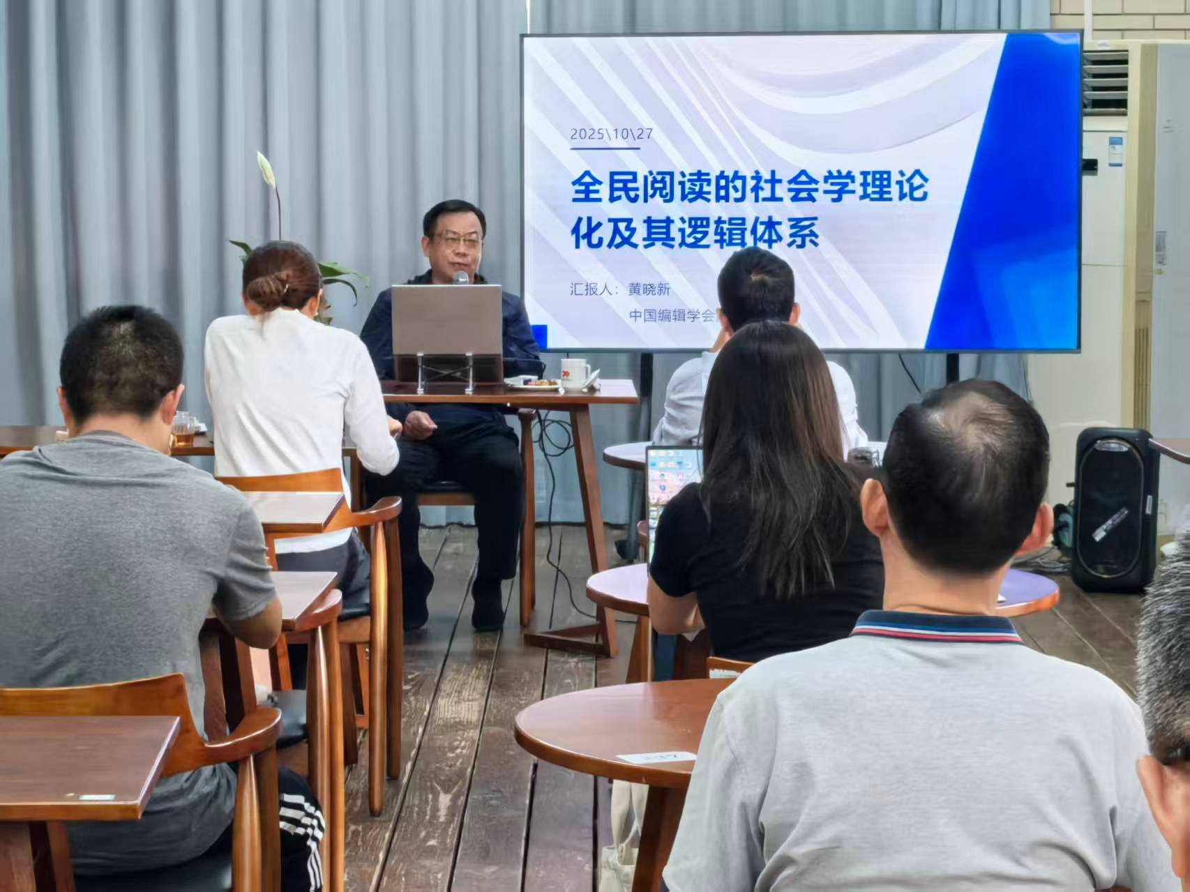 2025年10月27日,图书馆第六期馆员成长沙龙在总馆凤凰花咖啡屋举办。当天下午,特别邀请中国编辑学会副会长、中国新闻出版研究院原党委书记黄晓新编审作题为《全民阅读的社会学理论化及其逻辑体系—兼论高校图书馆阅读服务》的专题讲座。