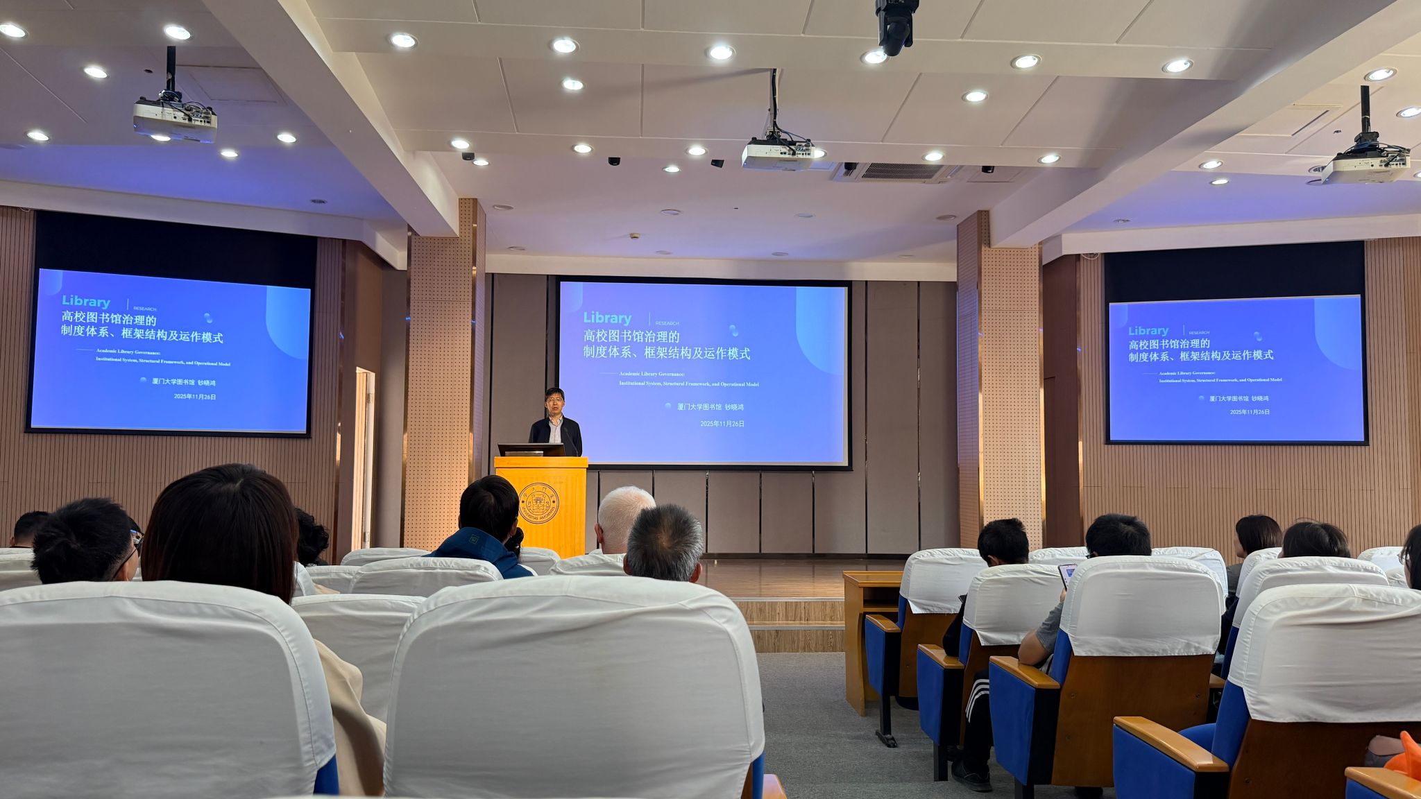 钞晓鸿馆长首先作题为《高校图书馆治理的制度体系、框架结构以及运作模式》的专题报告。钞馆长从系统分析国内高校图书馆治理现状入手,深入剖析了高校图书馆治理的制度体系、治理结构及运作模式三大核心内容。他指出,高校图书馆制度体系可分为根本制度、基本制度与具体制度三个维度;治理结构则涵盖所有者、运营者与监督者三个层面;运作模式则以目标任务、运行机制和成效结果为核心,致力于实现图书馆公共利益的最大化。面对图书馆治理过程中的新形势、新任务与新问题,钞馆长强调,需进一步强化学校担当,落实其主体责任;推动规划落地见效,并适时修订相关规章制度,为高校图书馆治理提供持续动力。