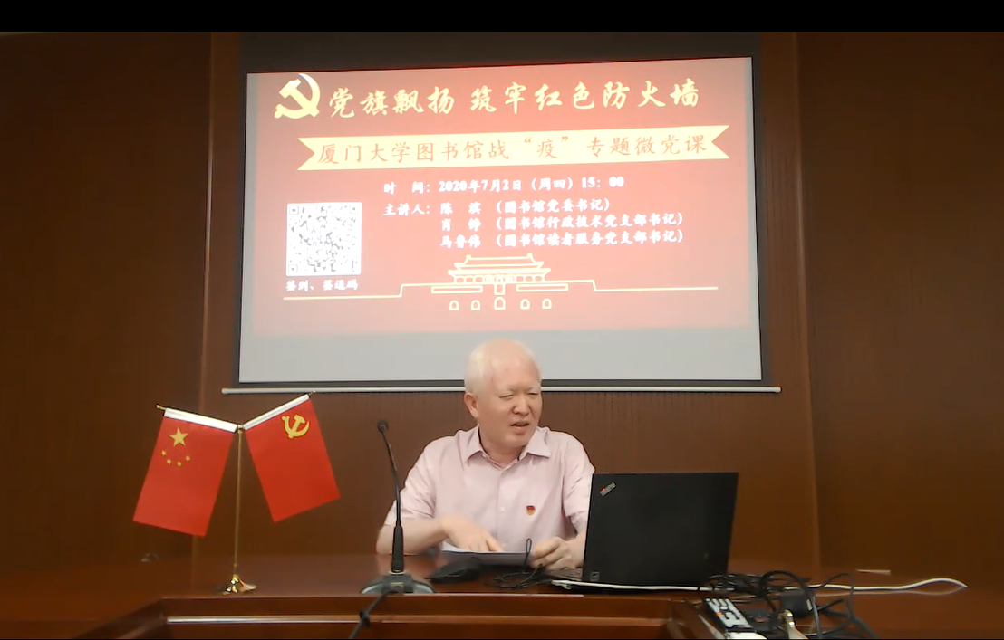 图书馆采编、特藏、本部分馆、翔安分馆支部结合战“疫”专题也于近日开展了微党课学习教育。