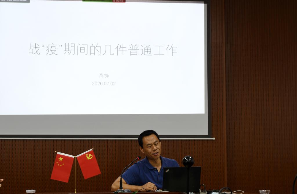 行政技术党支部书记肖铮以《战“疫”期间的几件普通工作》为题,通过党员干部在疫情期间整理数据日报告、开展对离退休同志的慰问、推出SPOC平台助力教师完成线上课程教学任务、开发涉外人员信息登记系统和翔安校区体育场馆预约系统等事例,讲述了党员干部的团结合作和责任担当。