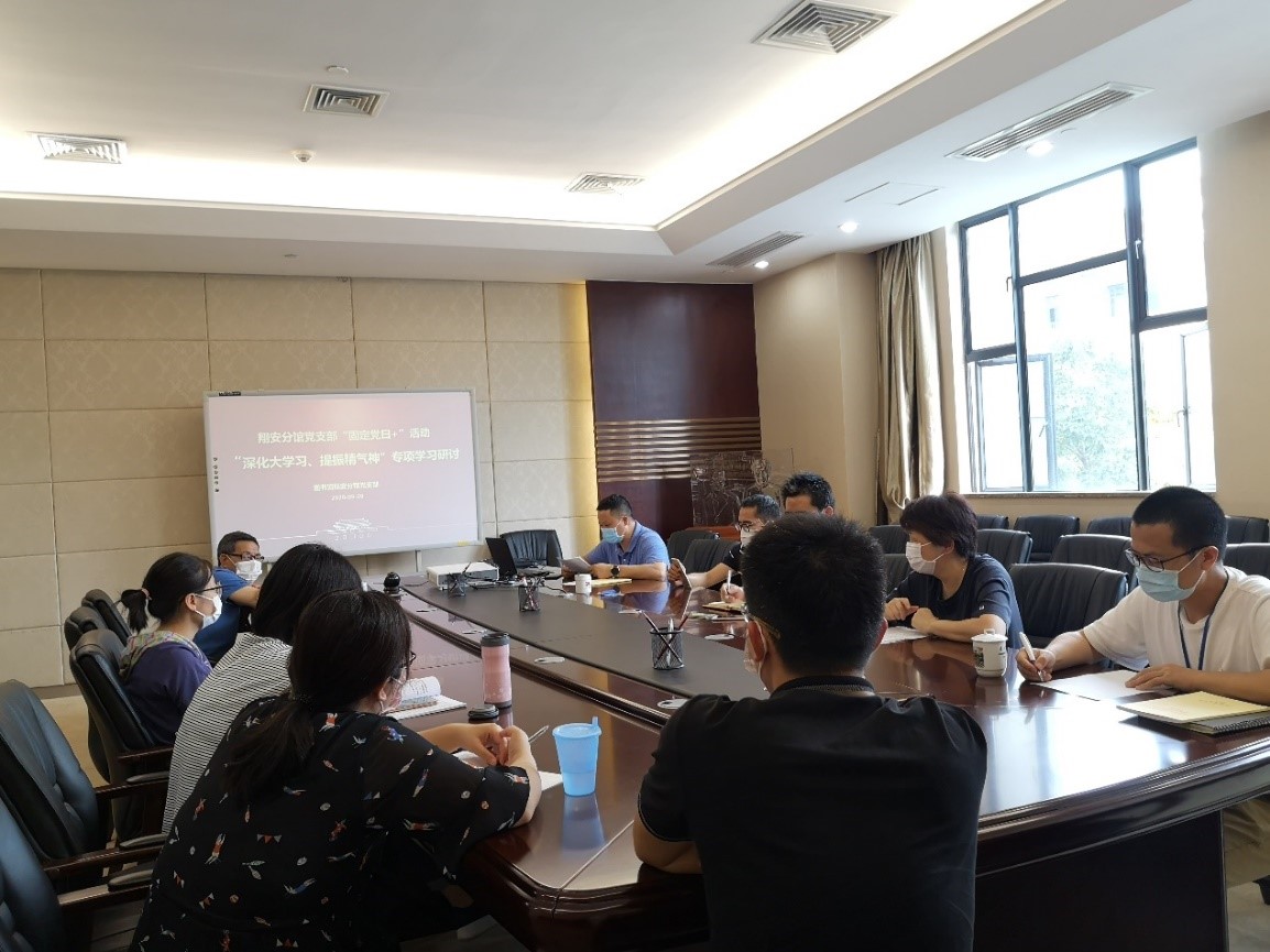 在通过线上发布学习材料,安排党员自行学习后,支部于2020年5月29日下午开展“深化大学习、提振精气神”专项学习研讨“固定党日+”活动。