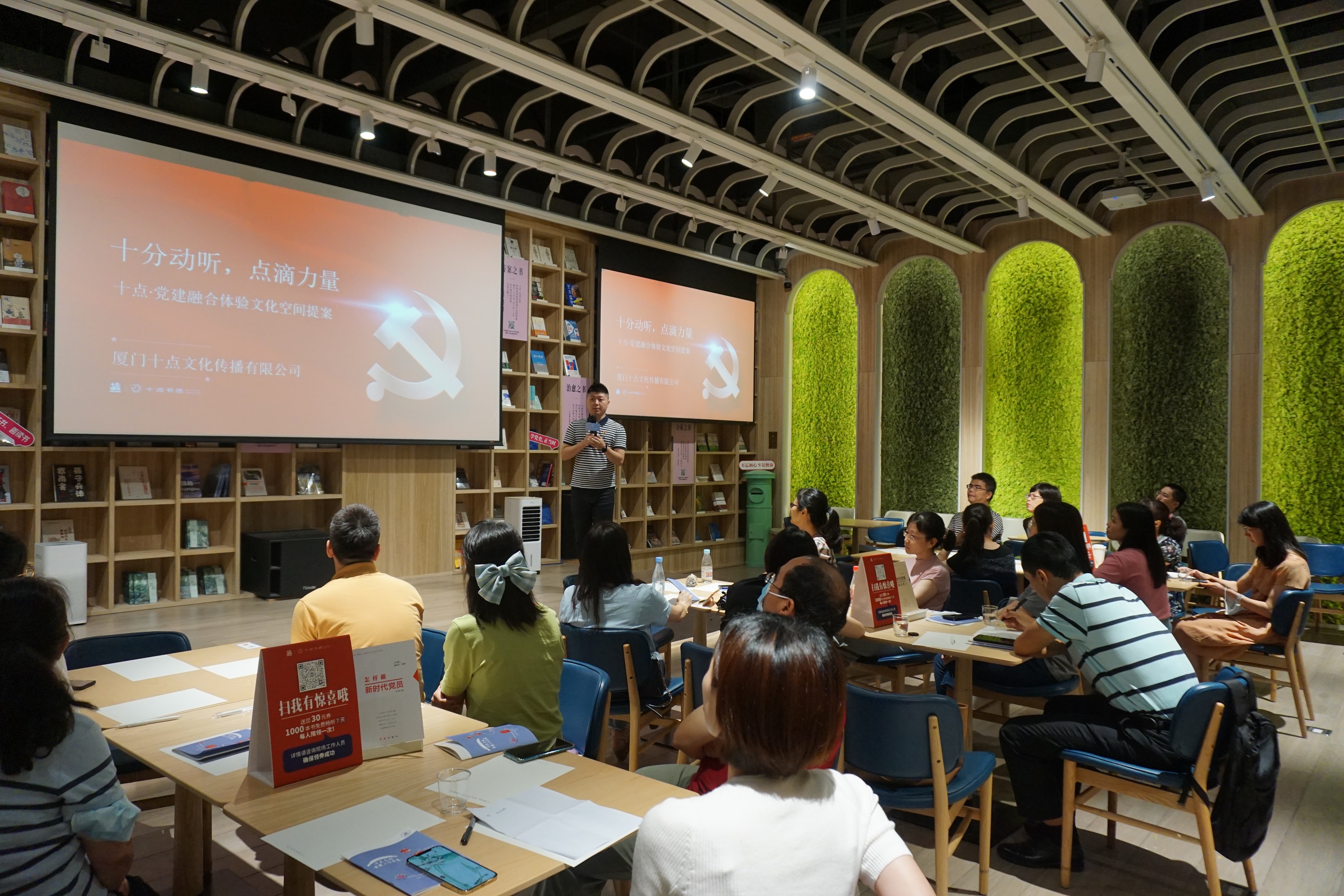 厦门十点文化传播有限公司党支部组织委员李松兴分享了《十点读书 打造线上线下美好文化生活平台》报告。十点书店是“十点读书”线上平台发展成熟后,走向线下打造的实体书店。他全面介绍了十点读书的发展历程及主要业务,展示了十点读书如何依托于大数据,精准分析用户群体特点,不断丰富服务内容,打造出符合用户需求的产品。此外,他还讲述了十点书店在中国共产党成立100周年之际,为不同单位打造了别具特色的党建融合体验文化空间,在推广阅读、扩宽业务内容的同时,加强了党史主题宣传教育,将党建工作与实际业务完美的融合。