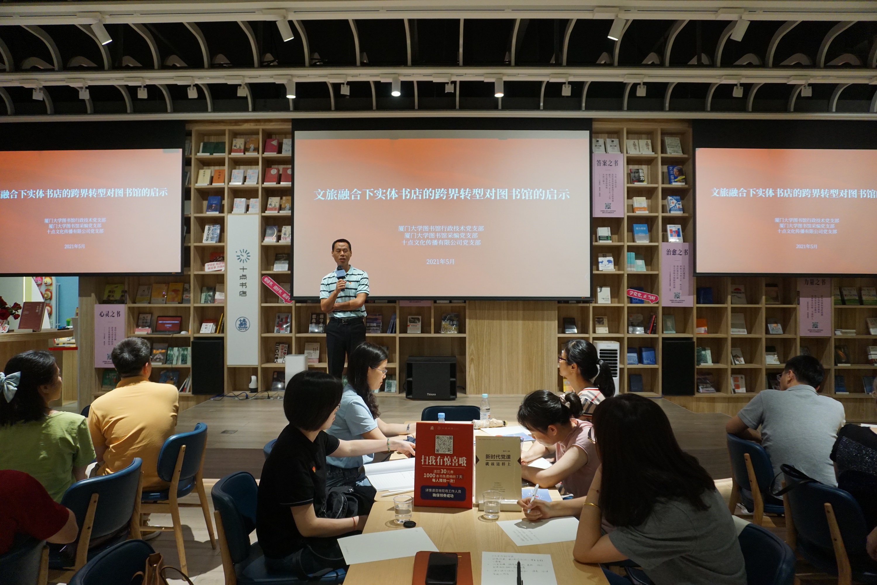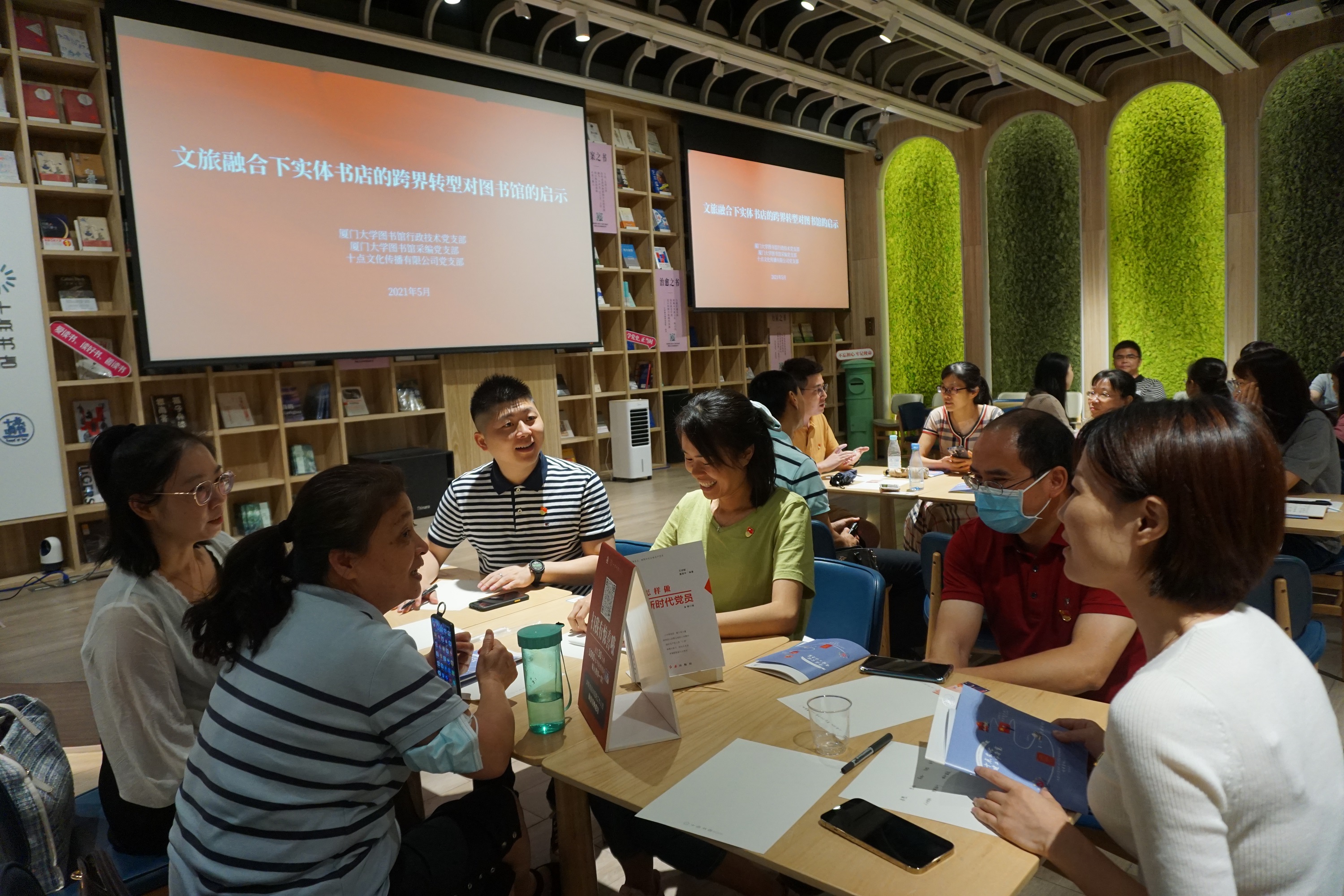 为贯彻落实厦门大学关于开展党史学习教育的通知要求,丰富党史学习教育形式,将党史学习与学习新中国史、改革开放史、社会主义发展史相贯通,围绕“学党史、悟思想、办实事、开新局”,引导党员干部读好书、勇担当、善作为,2021年5月26日下午,厦门大学图书馆行政技术党支部与采编党支部联合组织支部党员前往厦门市十点书店(中华城店),与厦门十点文化传播有限公司党支部共同开展现场教学活动,感受文旅融合下实体书店的跨界转型,交流基层党组织在中国特色社会主义文化建设中的作用。