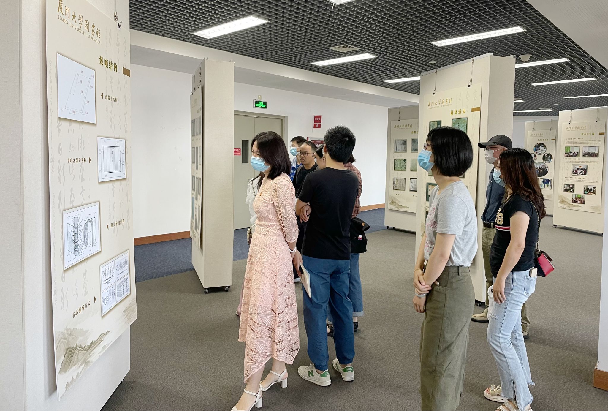 座谈结束后,与会党员移步德旺图书馆八楼,参观了尚处于初建阶段的文献修复中心。大家饶有兴致地观摩了各式文献修复展板和藏品,并根据空间的实地情况提出了很多建设性的意见。随后一行人参观了德旺图书馆五楼的香山书房和智力玩具空间,也为后期传统文化活动的宣传和开展提供更多空间支撑。