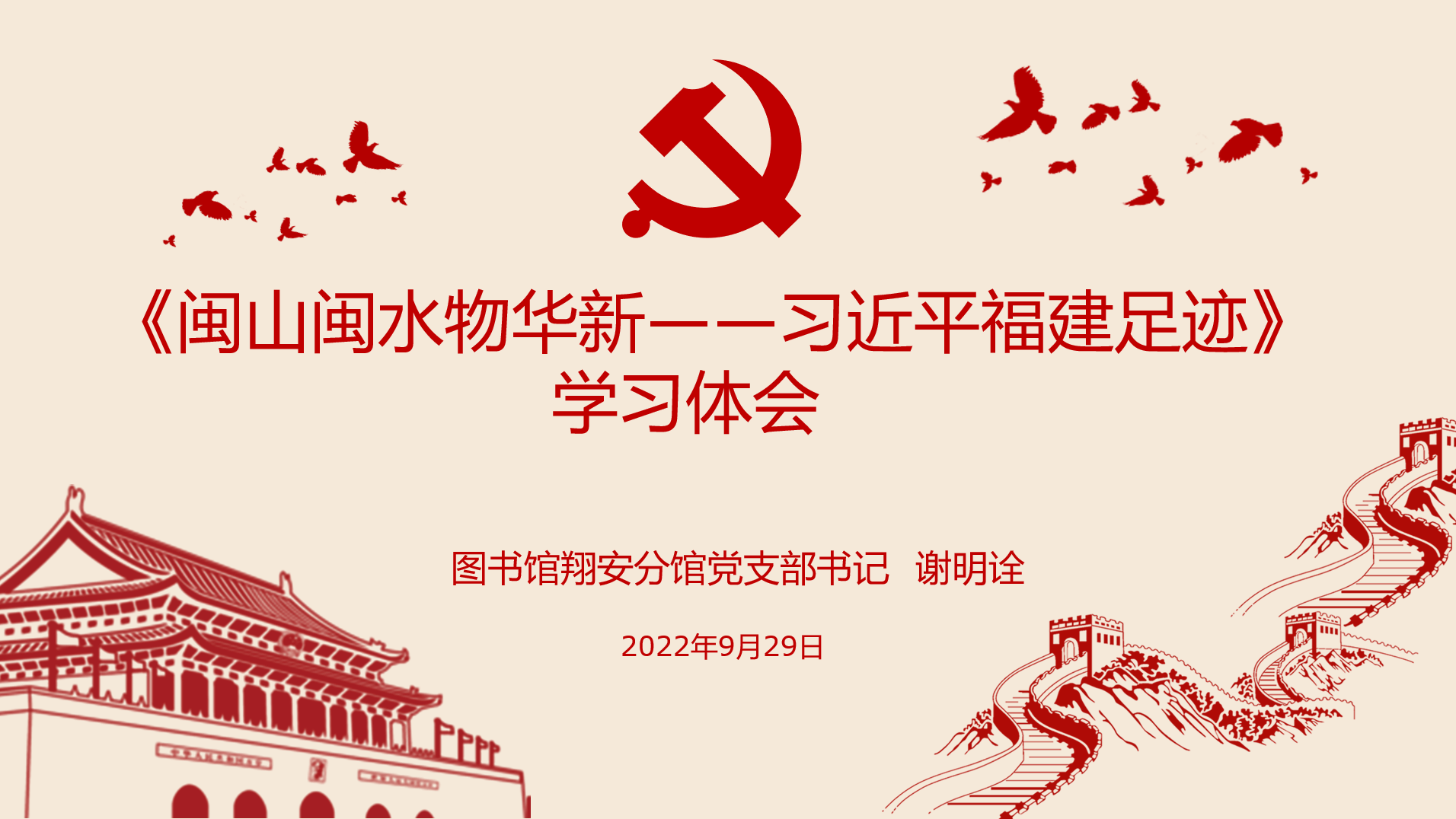 学习治国理念,追寻领袖足迹,感悟人民情怀。2022年9月29日上午,翔安分馆党支部开展固定党日+活动,在德旺图书馆二楼会议室组织支部党员集中学习研讨《习近平谈治国理政》第四卷和《闽山闽水物华新——习近平福建足迹》。学习由支部书记谢明诠主持。