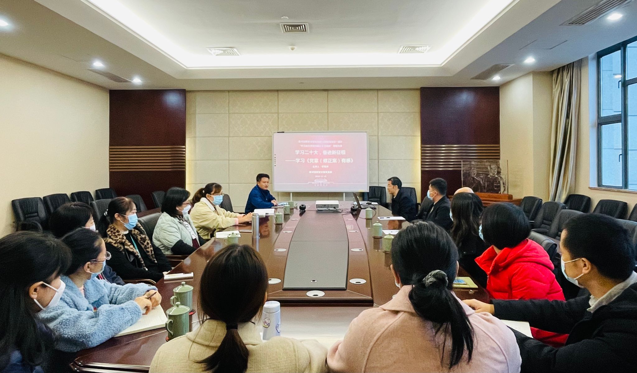 2022年12月15日下午,翔安分馆党支部在德旺图书馆二楼会议室开展“学习宣传贯彻党的二十大精神”专题党课学习。图书馆馆长、联系支部的党委委员钞晓鸿作题为《学习二十大,奋进新征程——学习<党章>(修正案)有感》的专题党课,图书馆副馆长、联系支部的党委委员吴明杰,德旺图书馆馆长李剑及全体馆员参加学习。