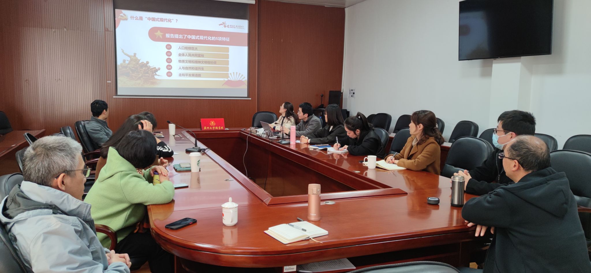 首先,支部书记林俊伟同志带领大家学习《什么是中国式现代化》。他从什么是“中国式现代化”、为什么是“中国式”现代化、中国式现代化将如何开辟人类新路等方面展开,说明了中国式现代化不是要建设那种两极分化的精英世界,而是要建设全体人民共同富裕的大同世界,为人类现代化提供了新蓝图。