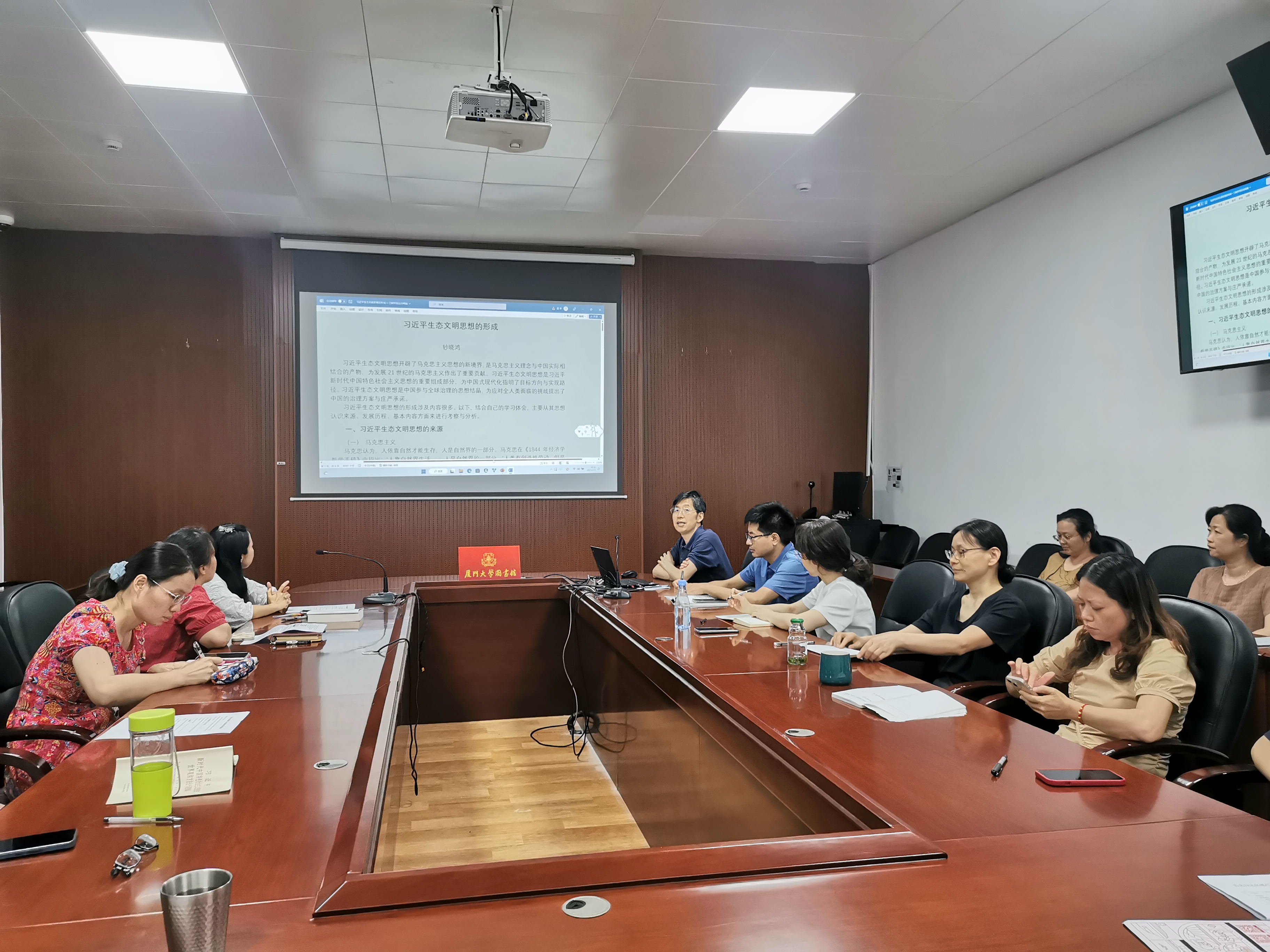 随后,支部党员陈滨、张育梅分别分享学习《习近平新时代中国特色社会主义思想的世界观和方法论专题摘编》和《习近平著作选读》第二卷的心得体会。陈滨指出,正如习近平总书记在文化传承发展座谈会上指出的那样,“马克思主义和中华优秀传统文化来源不同,但彼此存在高度的契合性,相互契合才能有机结合”,中华文明之所以能传承至今,与其强大的韧性和深邃的包容性密不可分,在中华文化海纳百川的历史长河中,形成了“儒、释、道”三家为主、和而不同的多元文化体系。我们接受马克思主义是中华文化具有开放包容性的集中体现,同时也必须科学借鉴中华优秀传统文化中治国理政的历史经验。张育梅重点学习了《努力建设人与自然和谐共生的现代化》一文,她表示,这篇重要讲话明确了生态文明建设在党和国家事业发展全局中的重要地位,丰富了习近平生态文明思想,为建设人与自然和谐共生的现代化提供了重要思想引领,具有鲜明的问题导向、重要的实践价值和深远的世界意义。