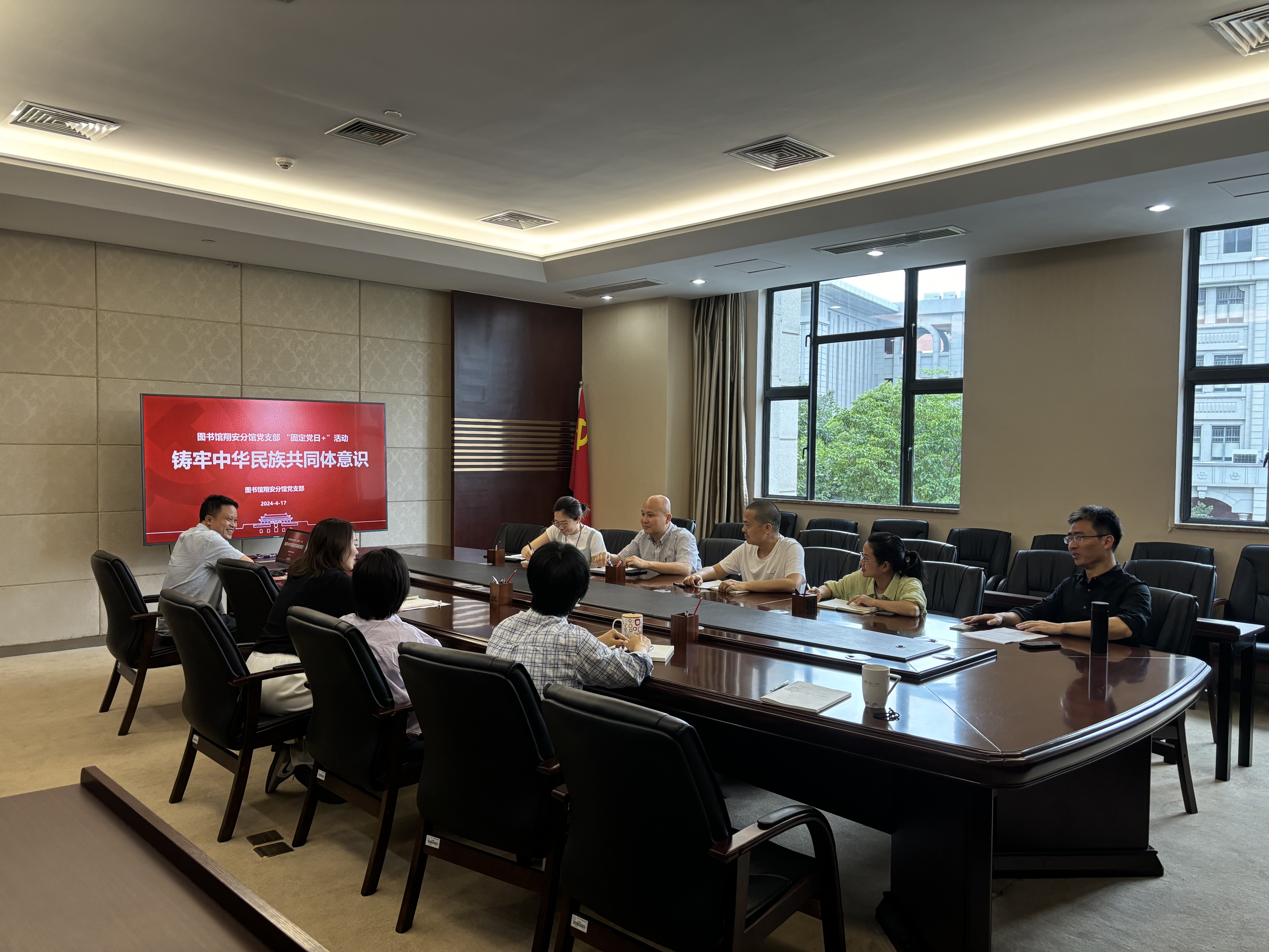 2024年4月17日下午,翔安分馆党支部在德旺图书馆二楼会议室开展四月“固定党日+”活动,学习领会“铸牢中华民族共同体意识”的深刻意蕴。活动由支部书记谢明诠主持,支部全体党员参加。