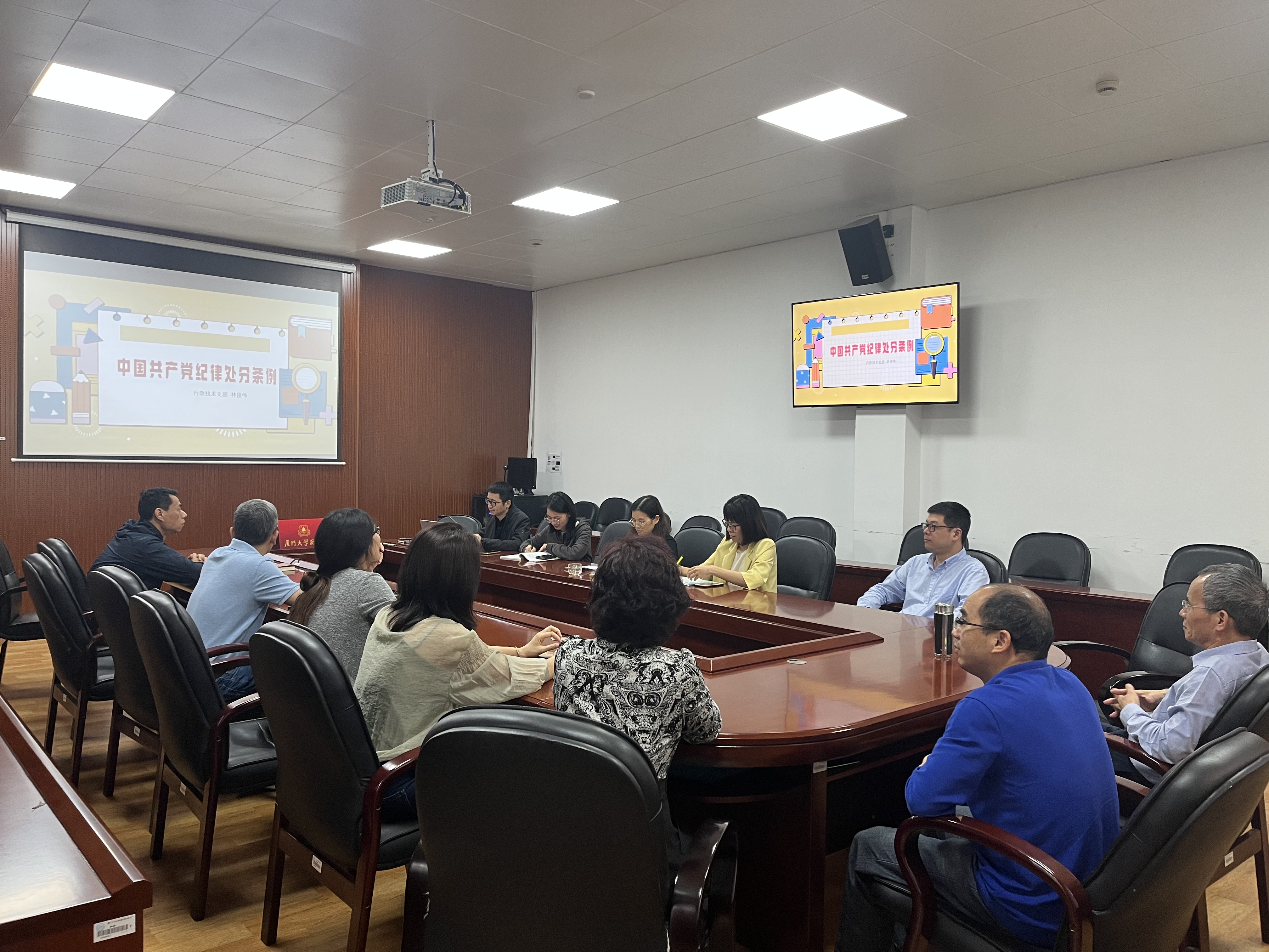 为进一步提升纪律意识,加强思想武装,提高行动自觉,图书馆行政技术支部于2024年4月25日上午在图书馆一楼会议室组织集中学习《中国共产党纪律处分条例》(以下简称《条例》),支部书记林俊伟主持学习,支部全体党员参会。