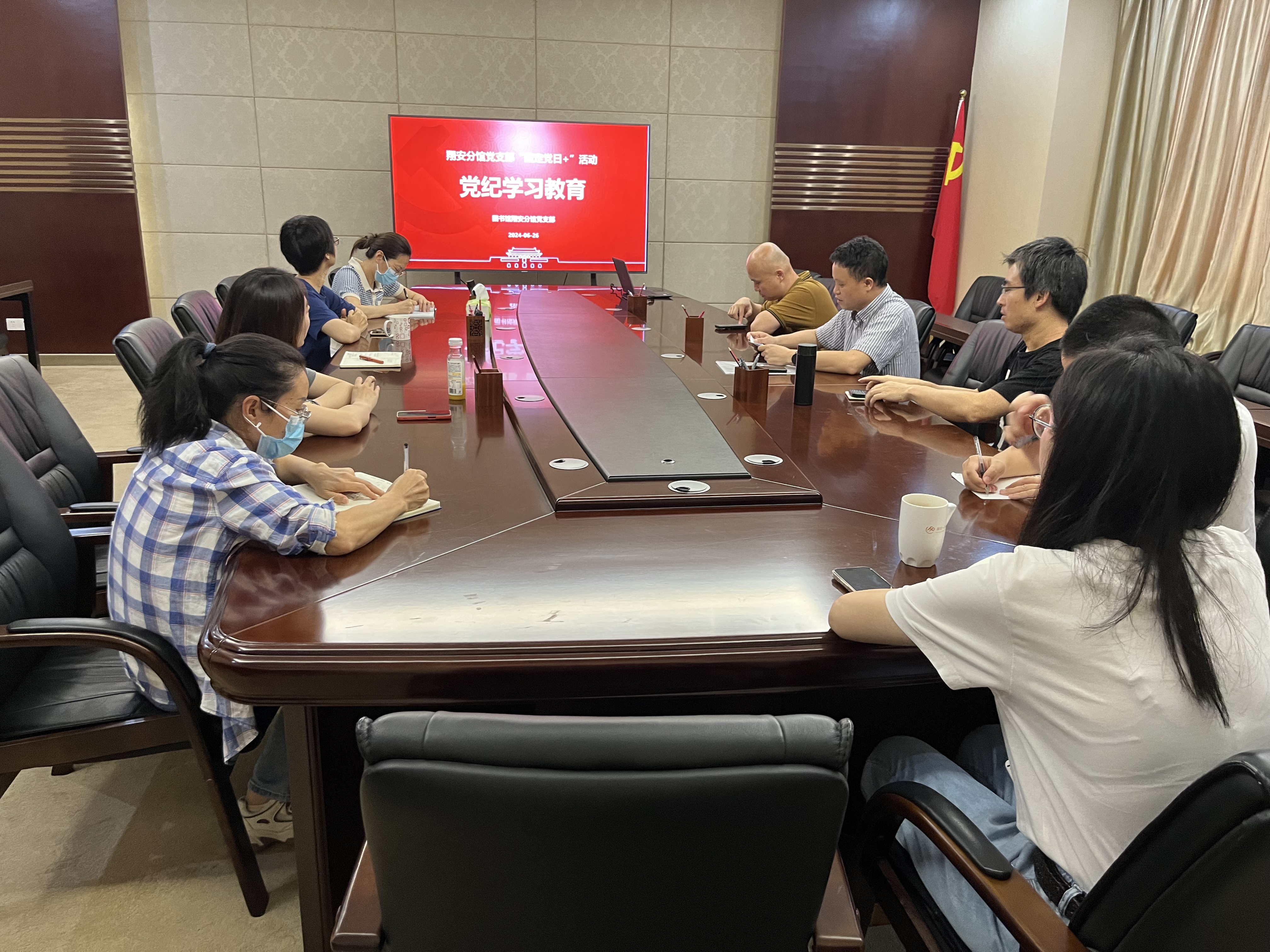 2024年6月26日下午,翔安分馆党支部开展主题为党纪学习教育的“固定党日+”活动。活动分为集中学习及现场教学两个部分,由支部书记谢明诠主持。