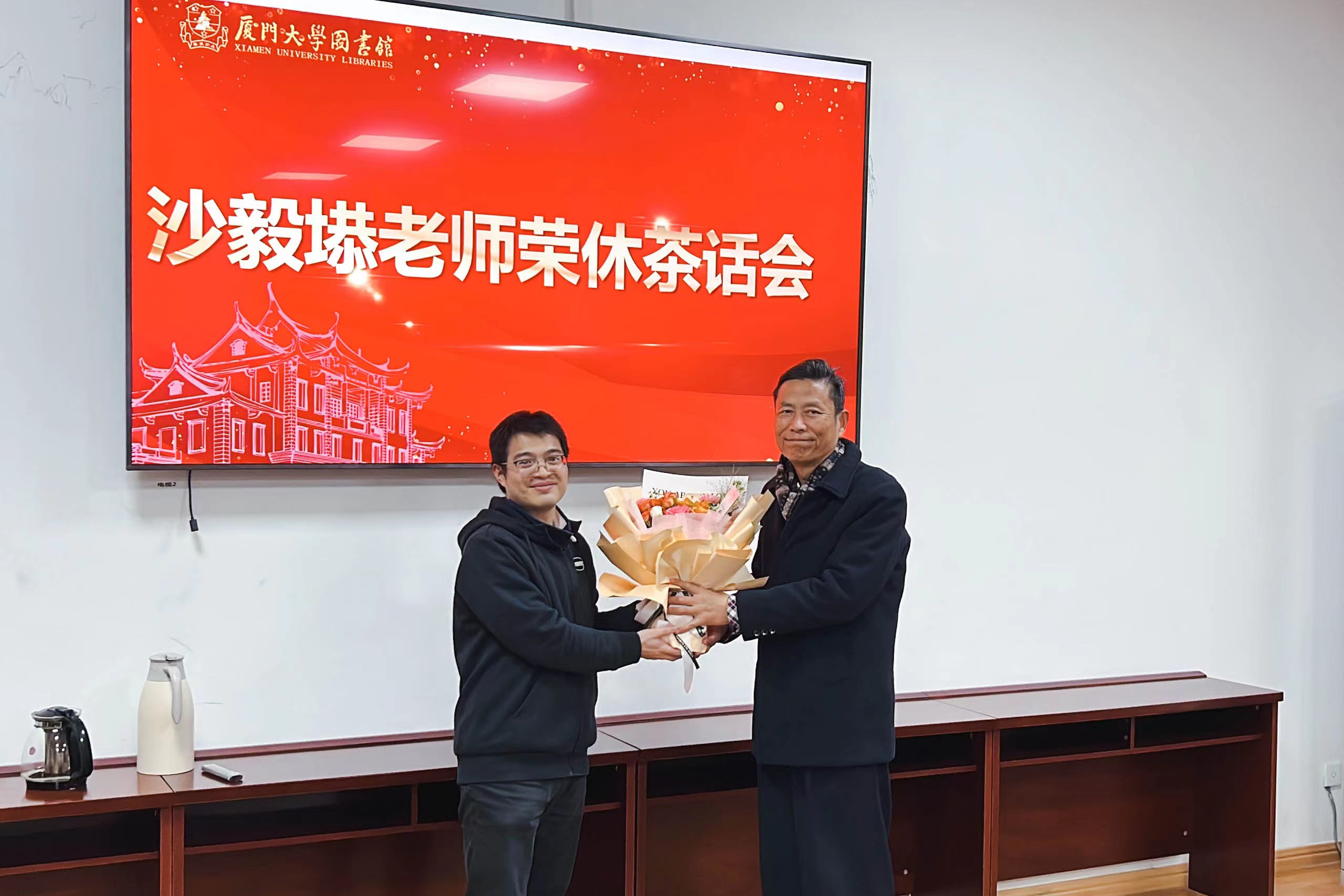 12月21日下午,编目部全体同事欢聚一堂,以最真挚的情谊为沙毅塨老师举行了一场温馨的荣休茶话会。馆党委书记侯利标和副馆长陈娟参加茶话会,会议由编目部主任钟荣英主持。