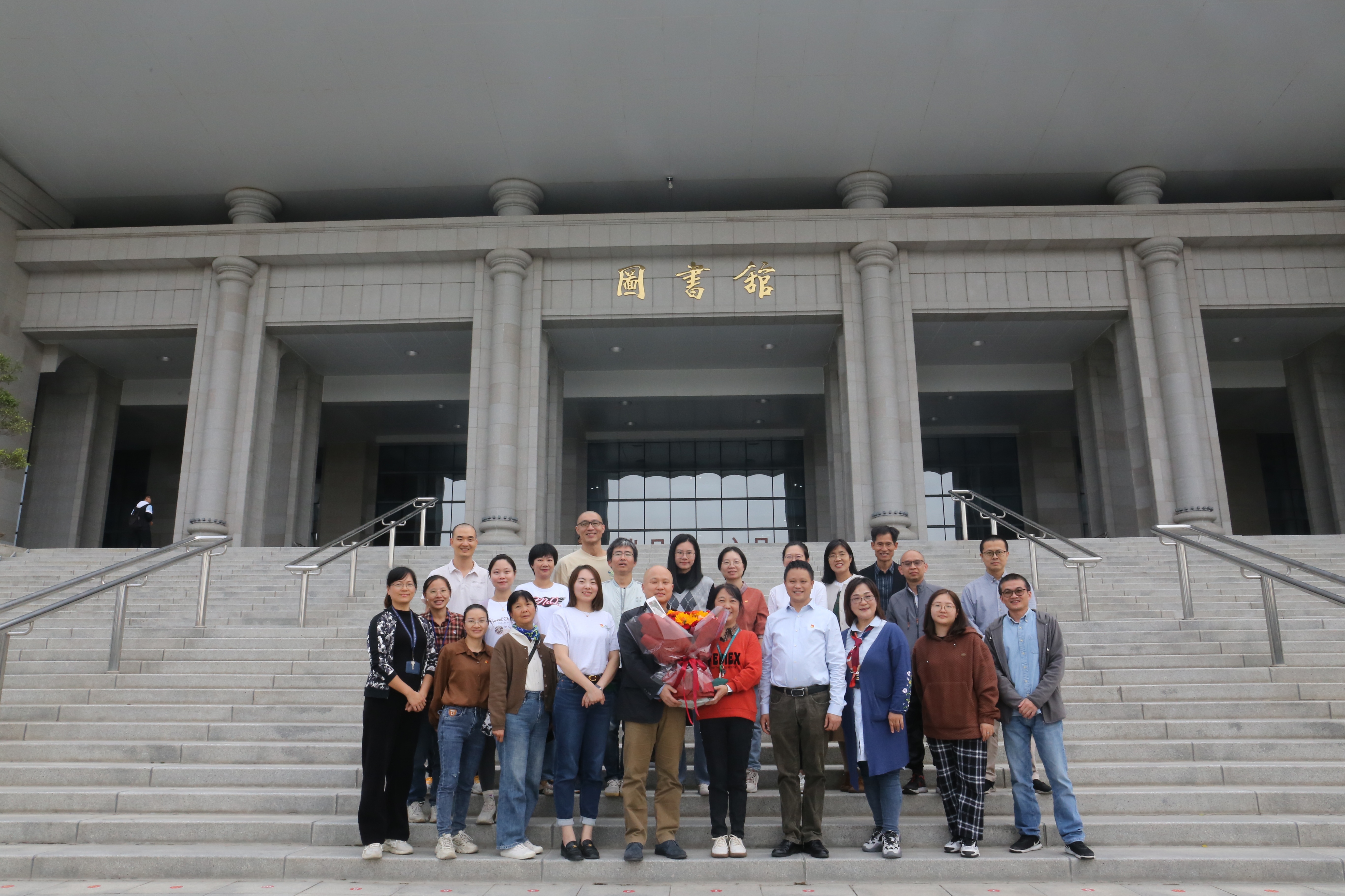 紧接着,屏幕上播放了罗萍平老师的工作日常片段,和储存图书馆全体同事对罗老师荣休的祝福视频,画面温馨感动。活动尾声,李剑副馆长和吴建南老师为罗萍平老师赠送荣休纪念品和鲜花,并集体合影留念。