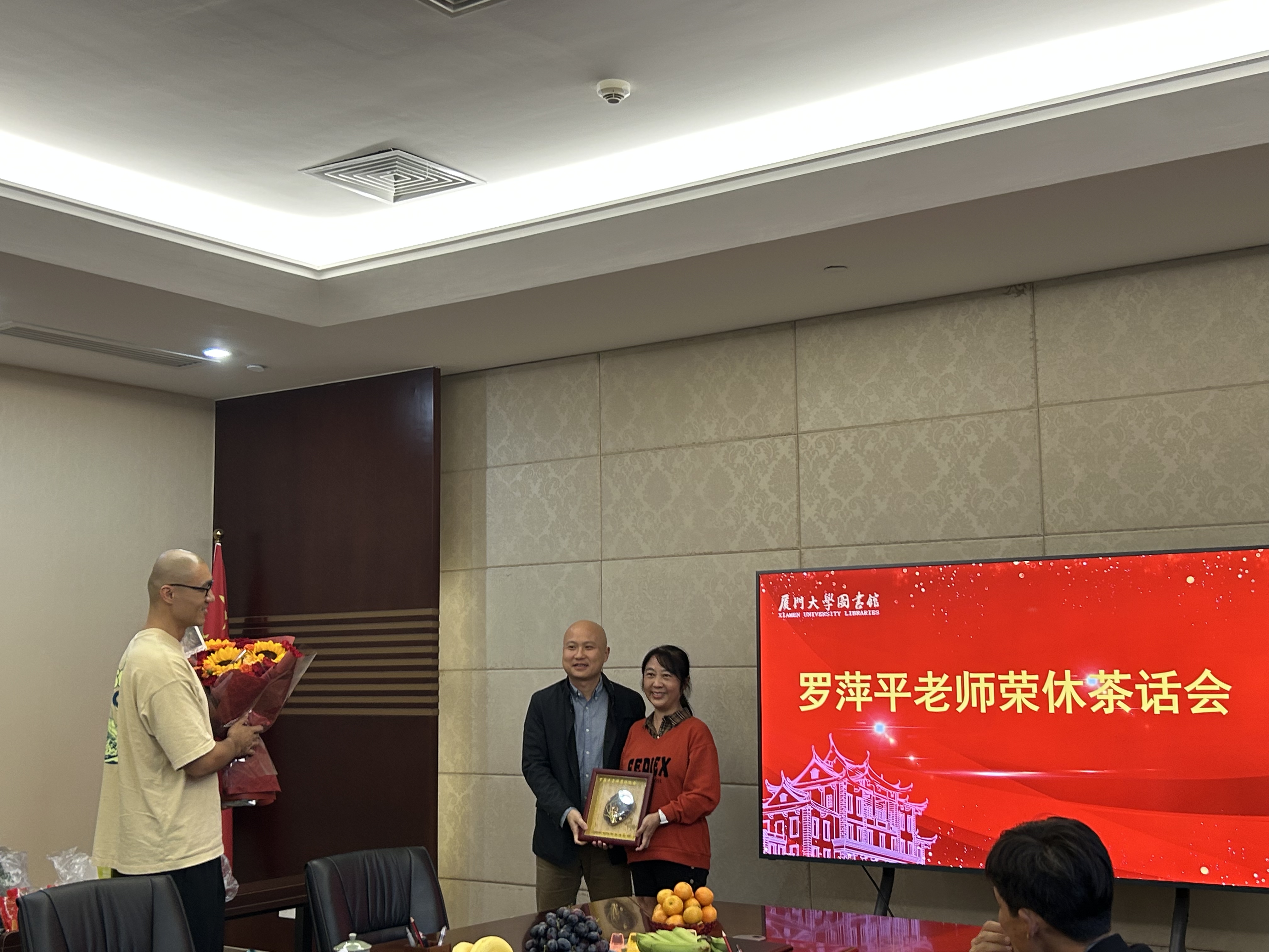 活动现场气氛热烈,暖意浓浓。李剑副馆长代表馆里致辞,对罗萍平老师为厦门大学图书馆所作出的成绩和贡献表达了衷心感谢,对她的未来退休生活送上了美好祝福,希望罗老师“常回家看看”。