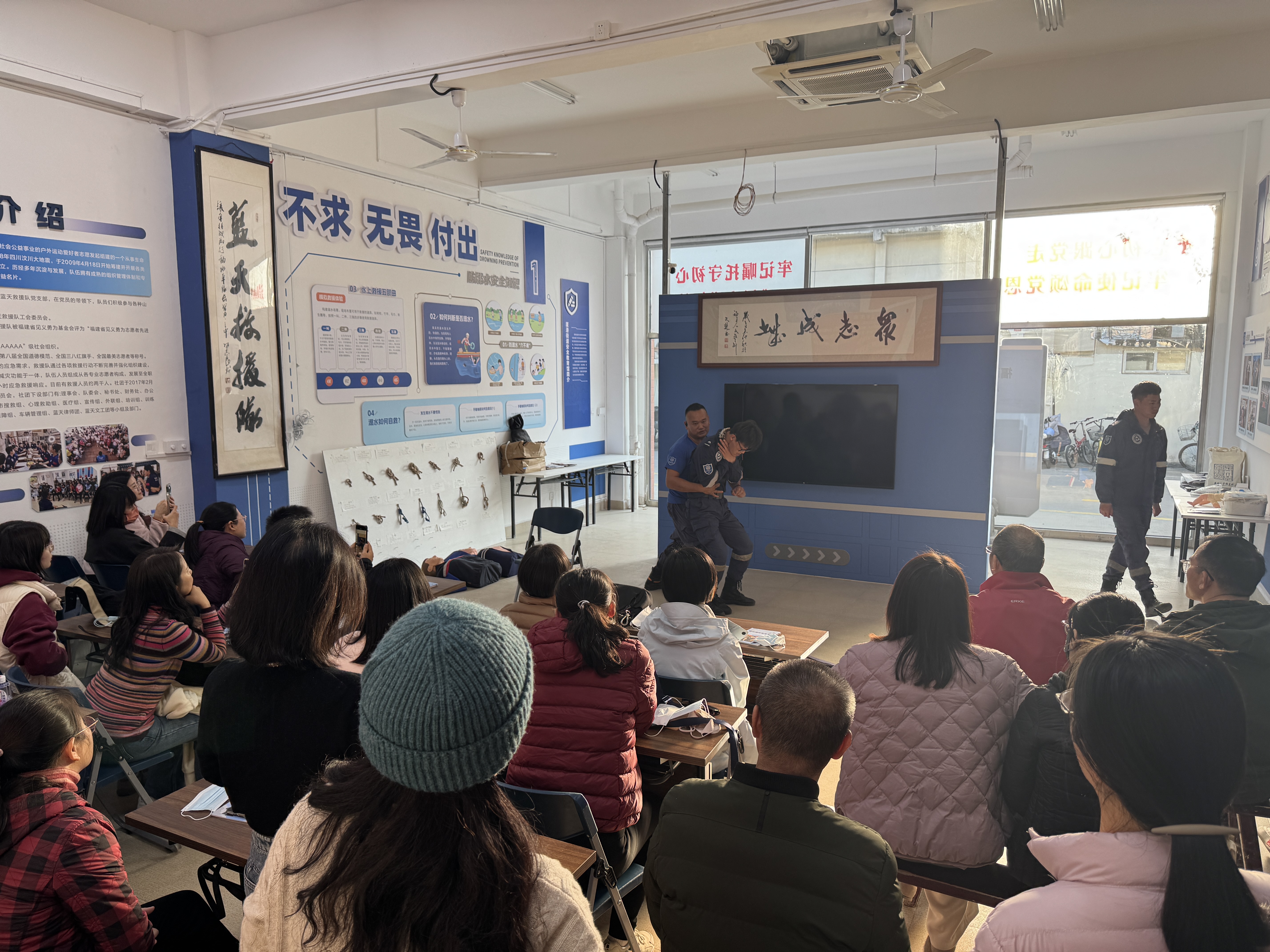 在海姆立克急救法的培训中,救援团队针对成人、儿童和婴儿不同群体在遭遇异物梗阻情况下,所表现出的反映及症状展开深入讲解,并分别演示正确操作要点,如对成人实施海姆立克急救时,施救者应站在患者身后,一手握拳,拇指顶住患者肚脐上方两横指处、剑突下方,另一手抱住患者,快速有力地拉动双臂,向内、向上冲击上腹部。