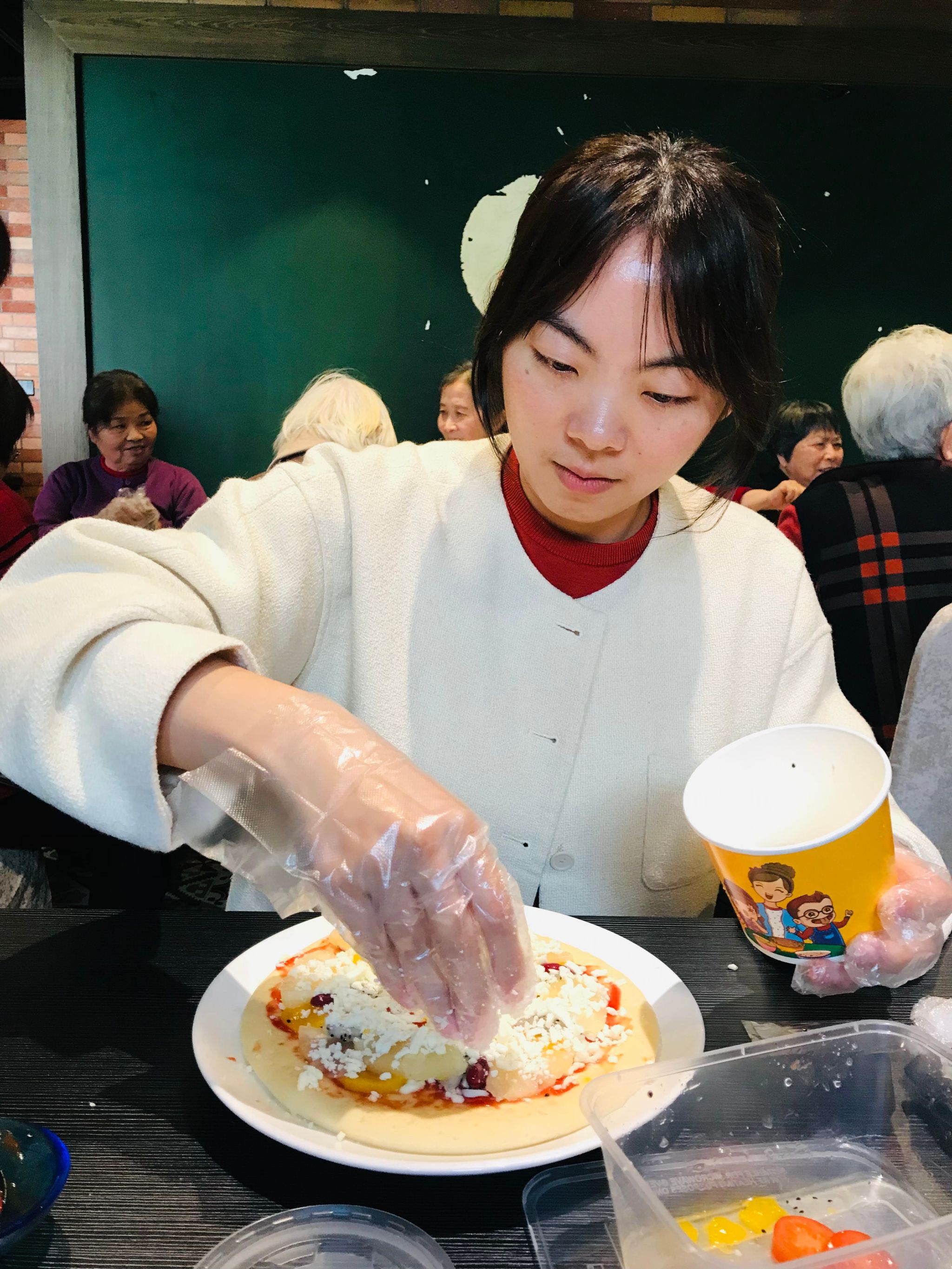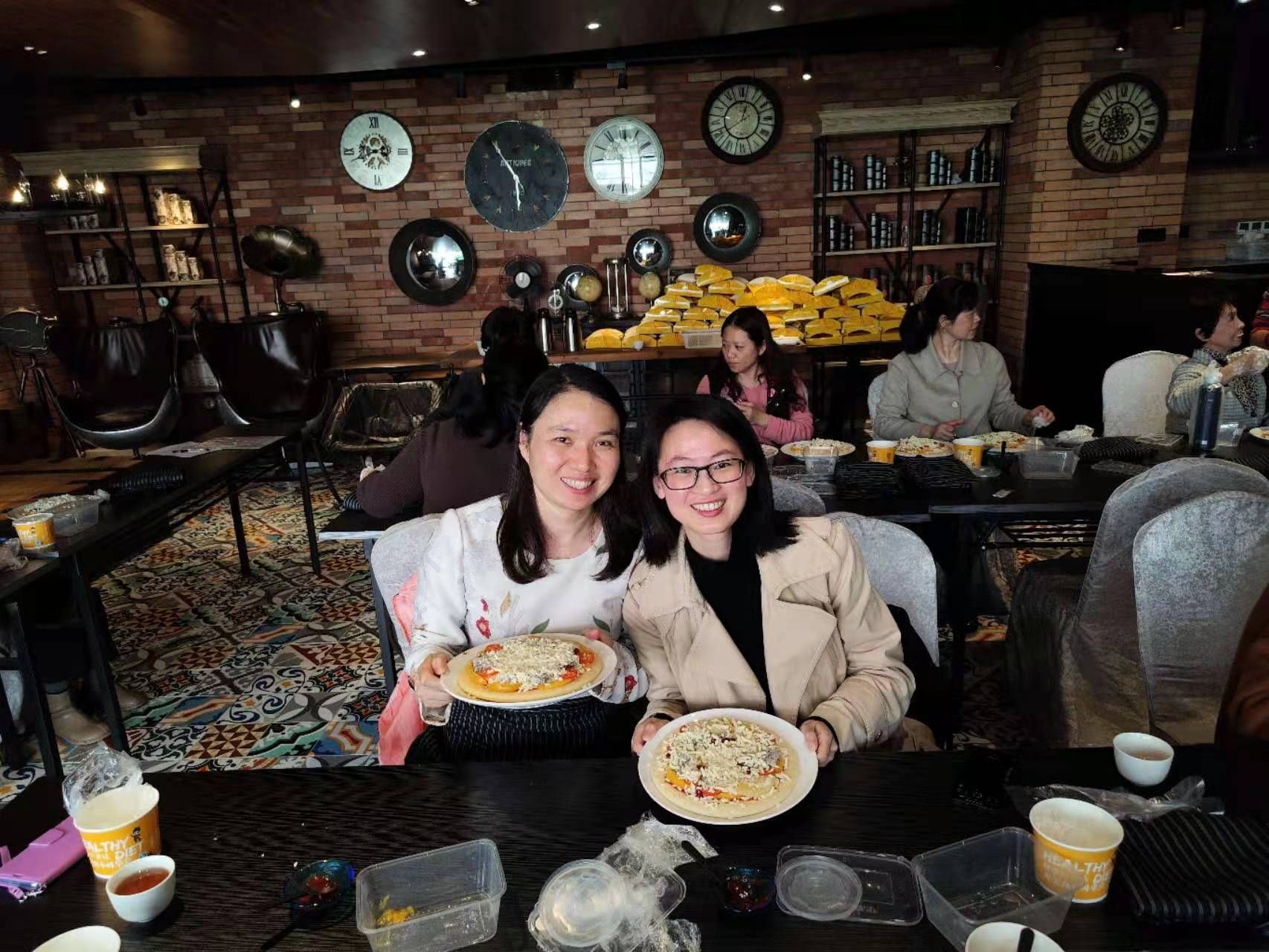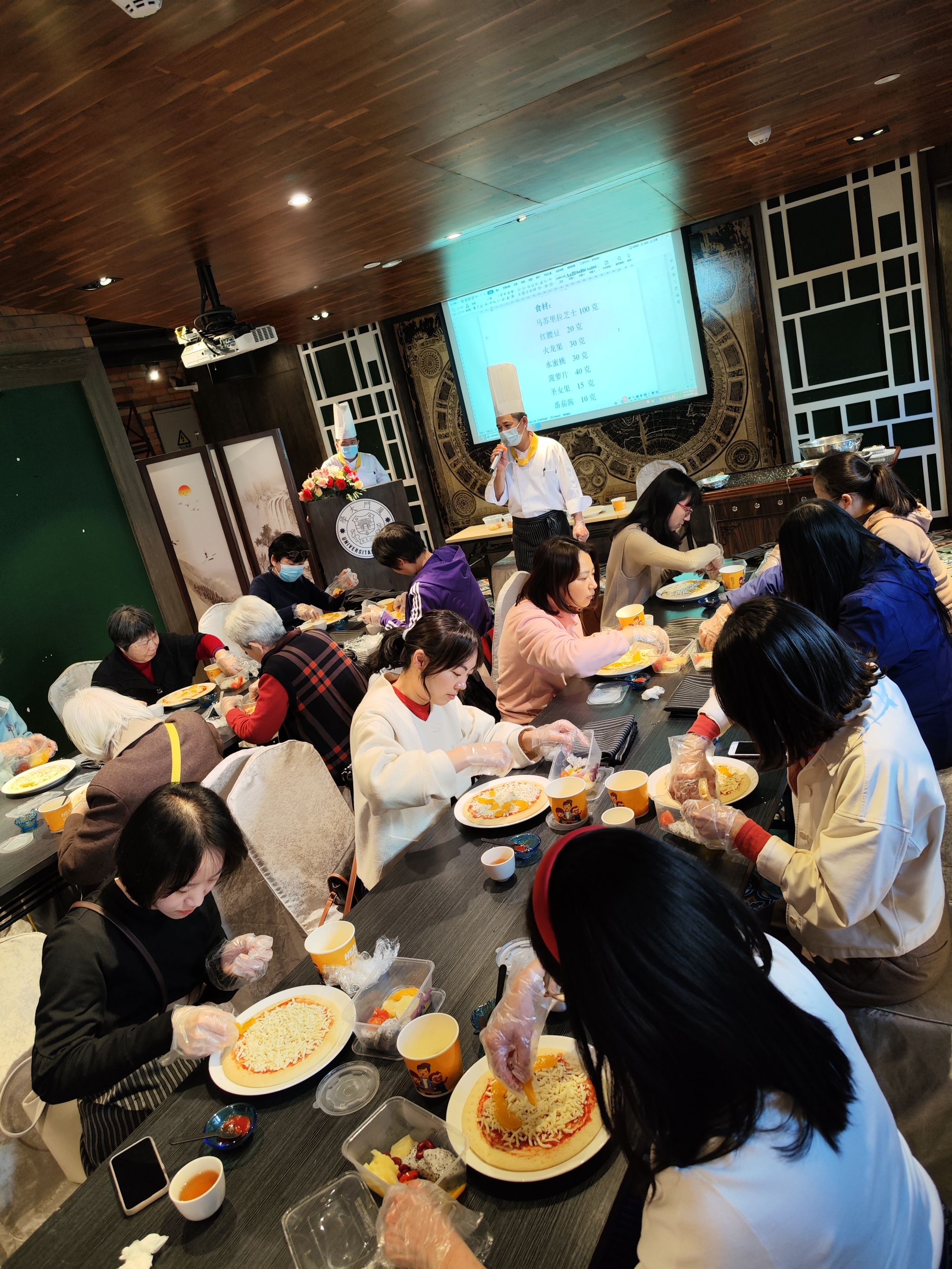 与此同时,披萨DIY活动也在梧桐楼一楼艺文沙龙热火朝天地进行着。披萨制作师傅从准备食材开始,细致耐心地讲解制作流程和注意事项,参加活动的40多位女同事边听讲解边体验,边制作边交流,现场欢声笑语此起彼伏。最后,大家心满意足地拿着亲手制作的披萨尽兴而归。