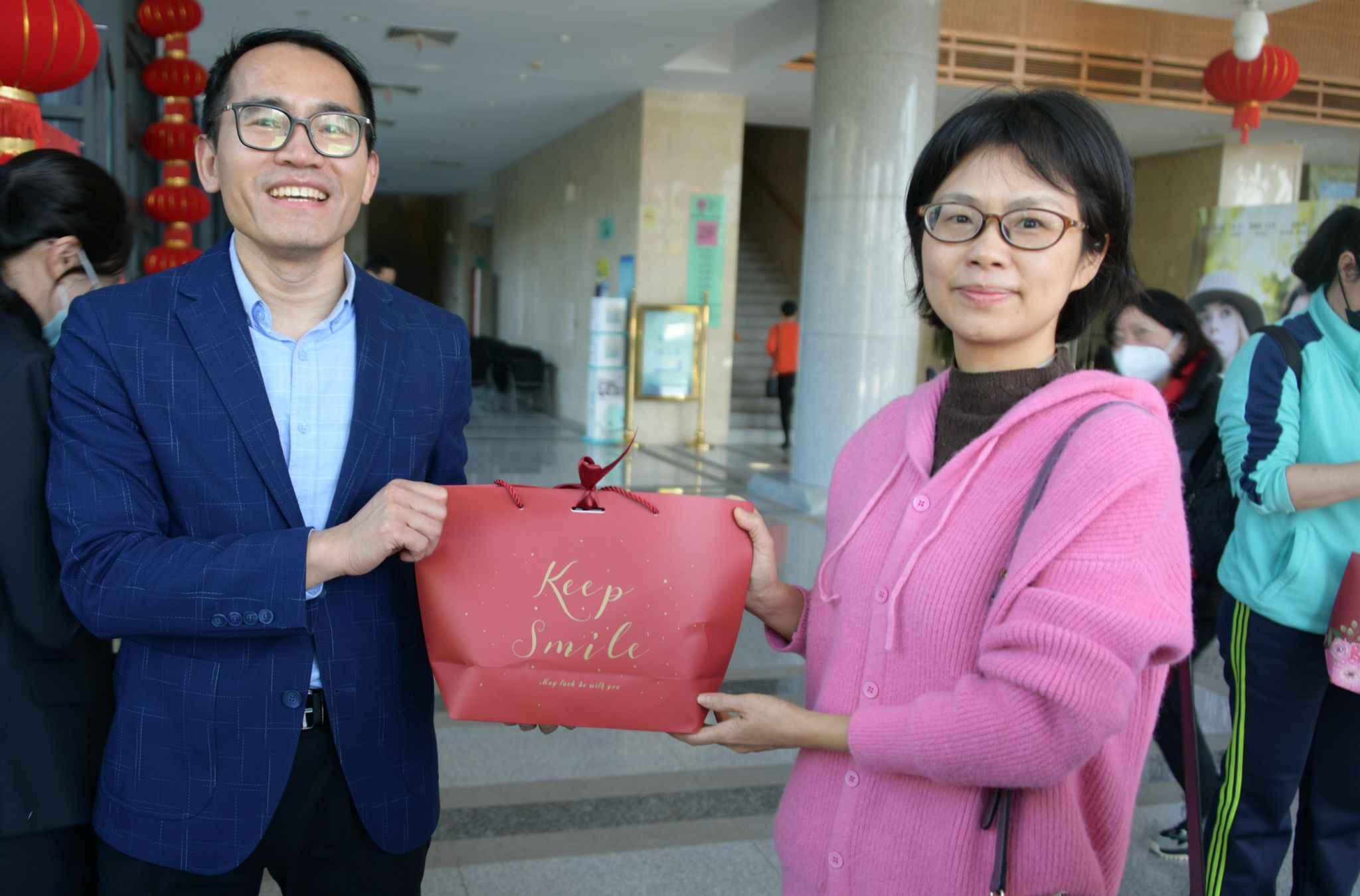 下午两点半,科艺中心电影厅准时放映《奇迹·笨小孩》,50多位女职工欣赏了一段从困境中奋起努力拼搏逆转人生的感人故事。而在放映前,工会主席陈全松和副主席杨小利在大厅门口为前来参加活动的女同事们送上精美的礼物,以及真挚的祝福和问候。